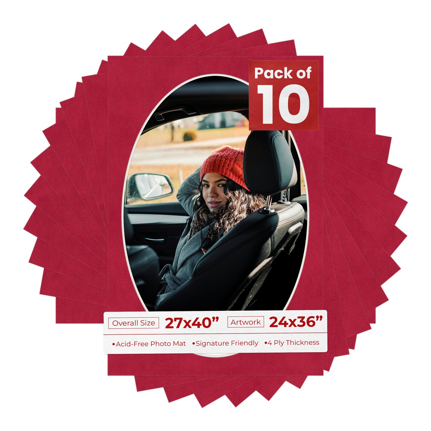 Red Suede Mat Board for 27x40 Frames - Oval Opening for 24x36 Photos