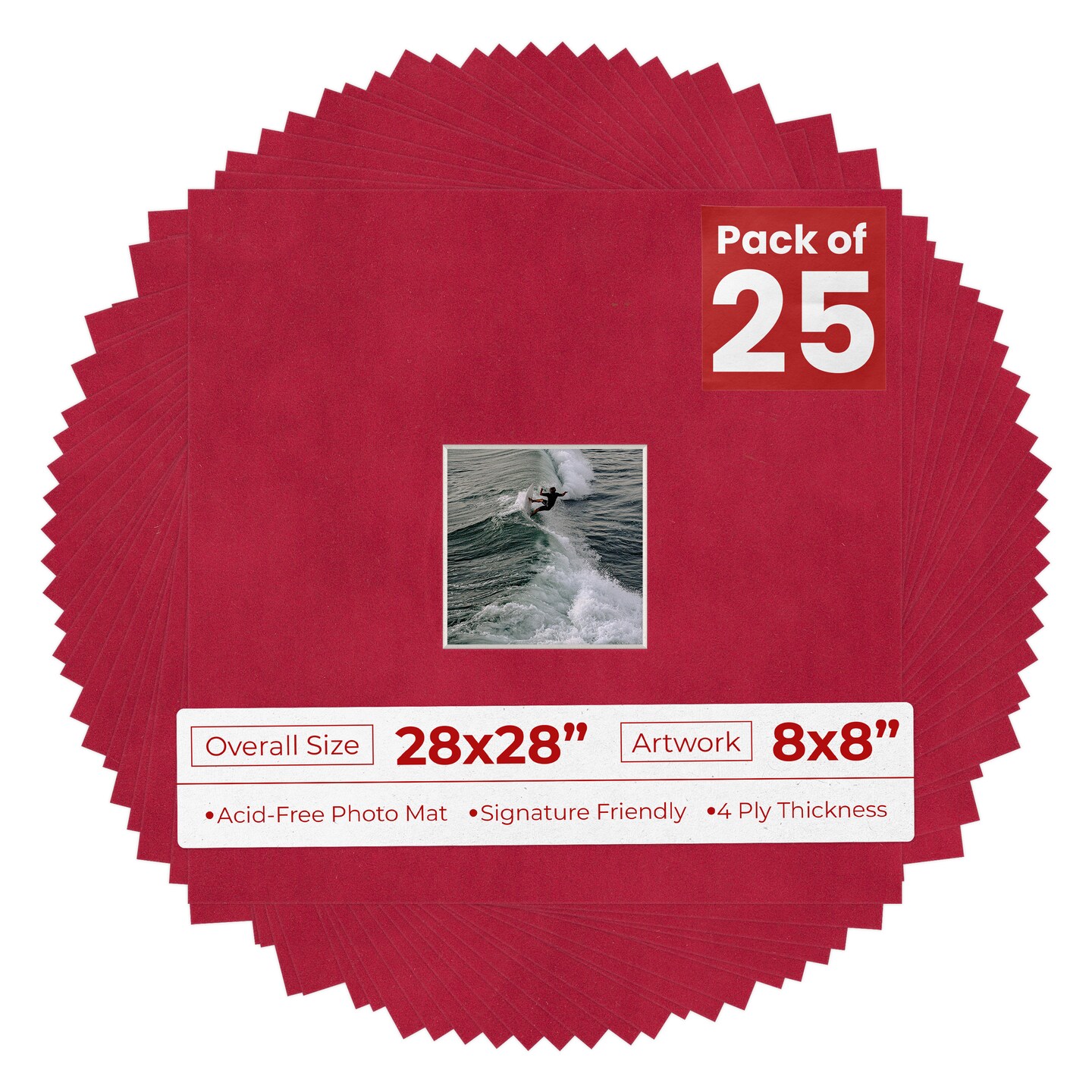 Red Suede Mat Board for 28x28 Frames - Fits 8x8 Photos