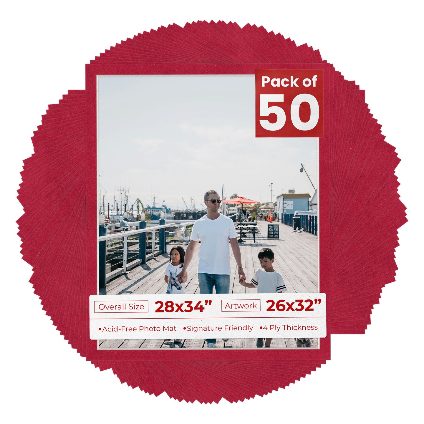 Red Suede Mat Board for 28x34 Frames - Fits 26x32 Photos