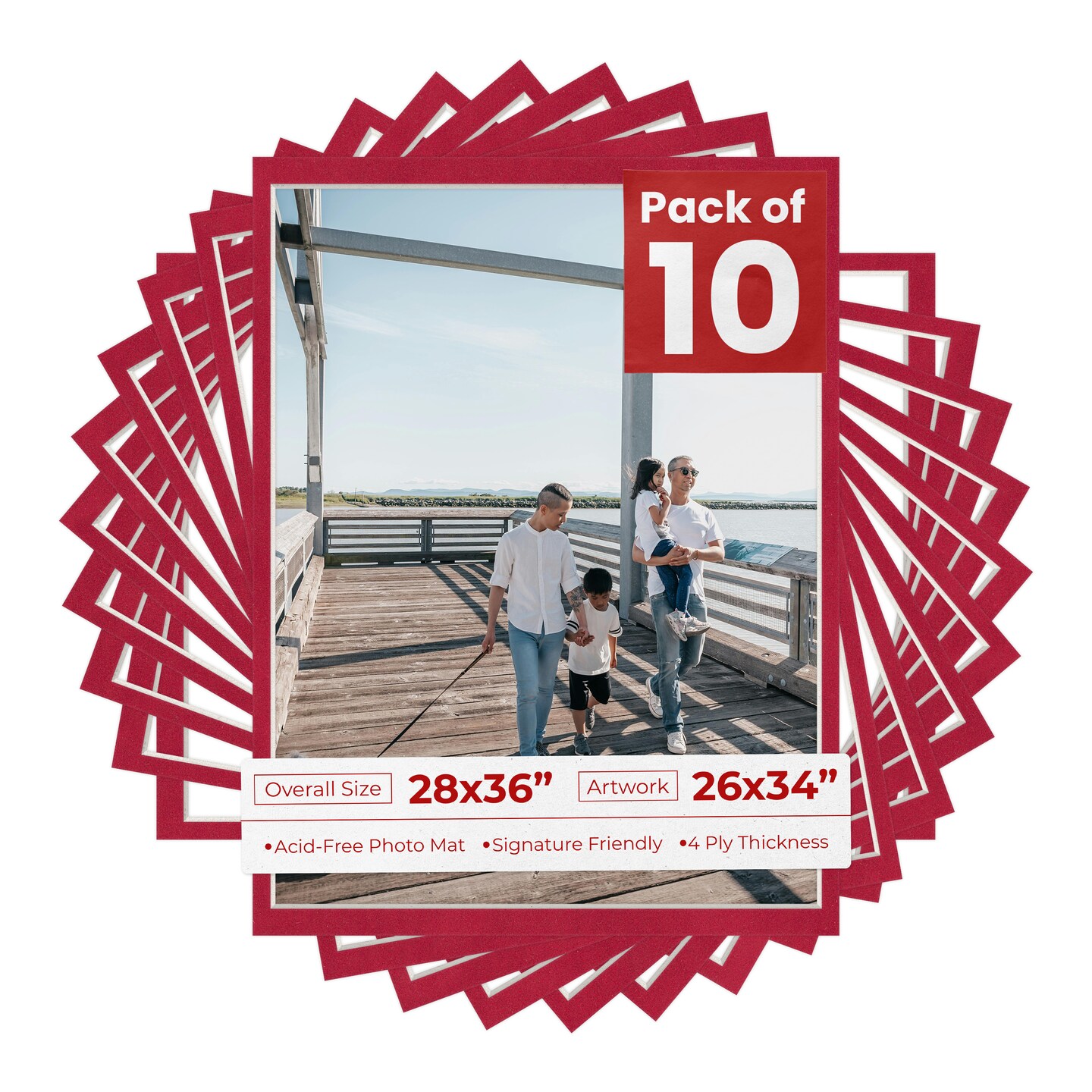 Red Suede Mat Board for 28x36 Frames - Fits 26x34 Photos