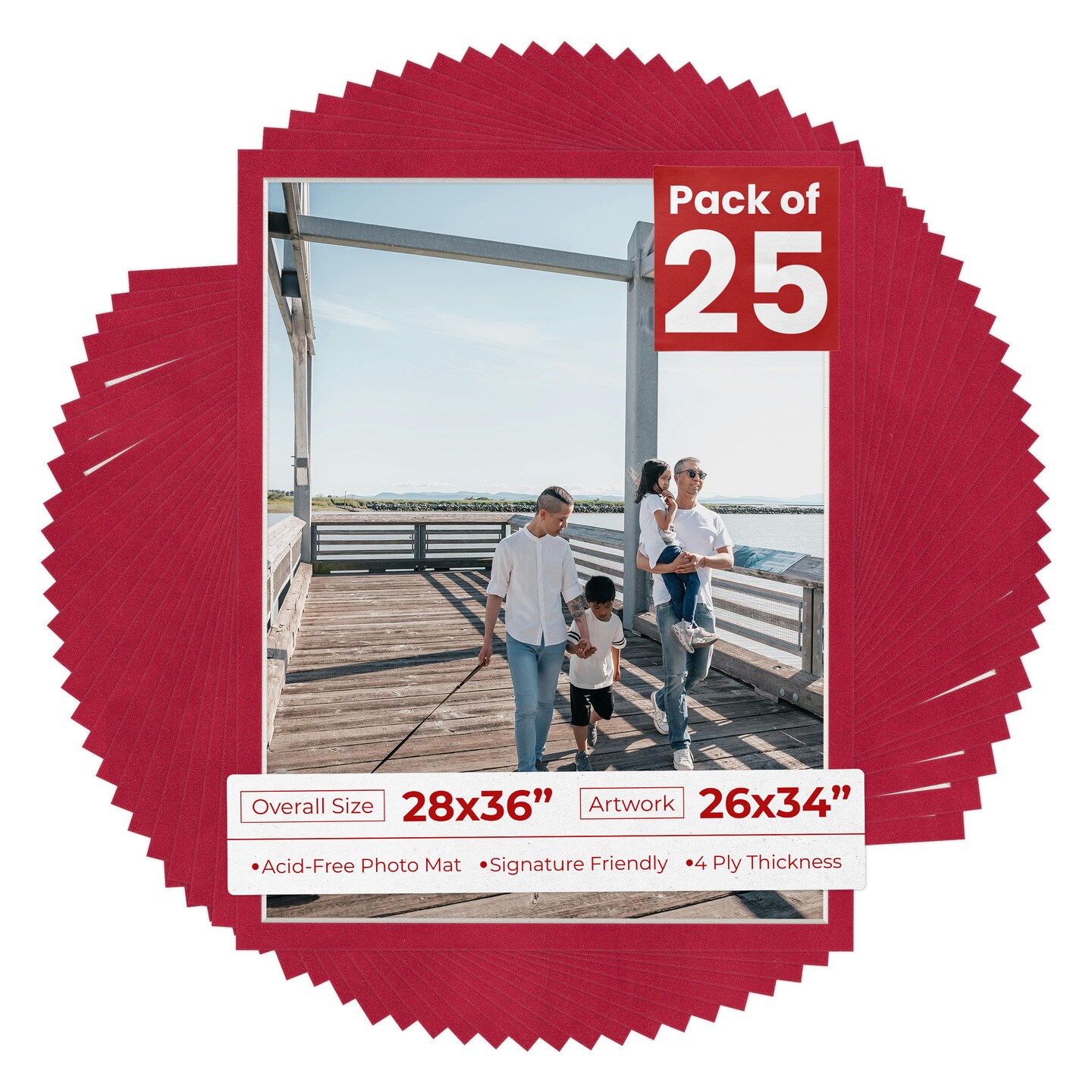 Red Suede Mat Board for 28x36 Frames - Fits 26x34 Photos