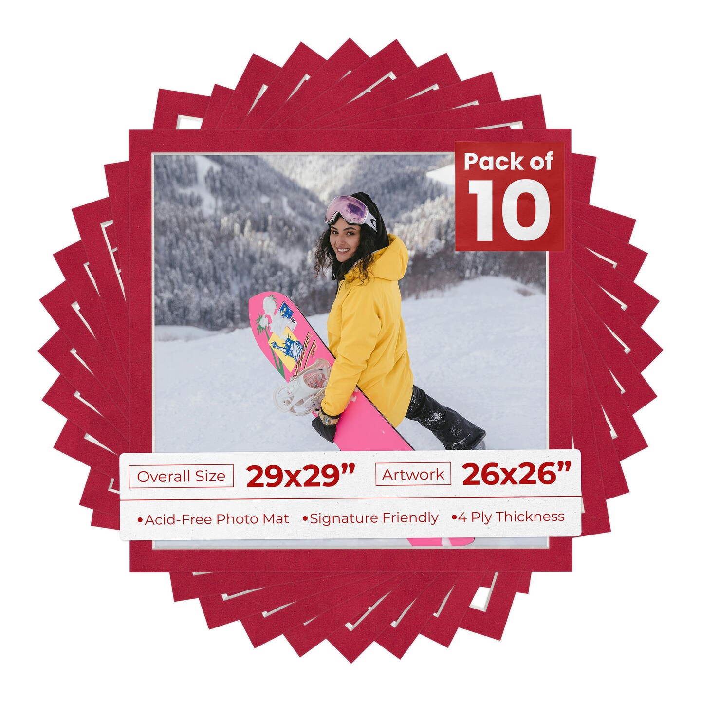Red Suede Mat Board for 29x29 Frames - Fits 26x26 Photos