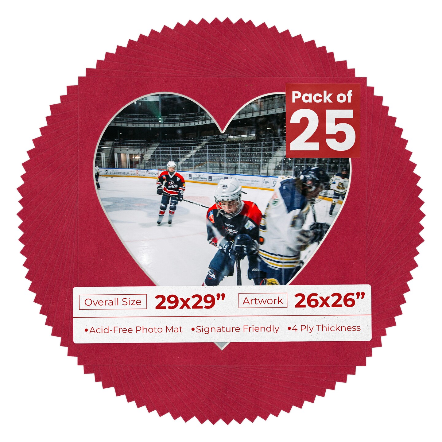 Red Suede Mat Board for 29x29 Frames - Heart Opening for 26x26 Photos