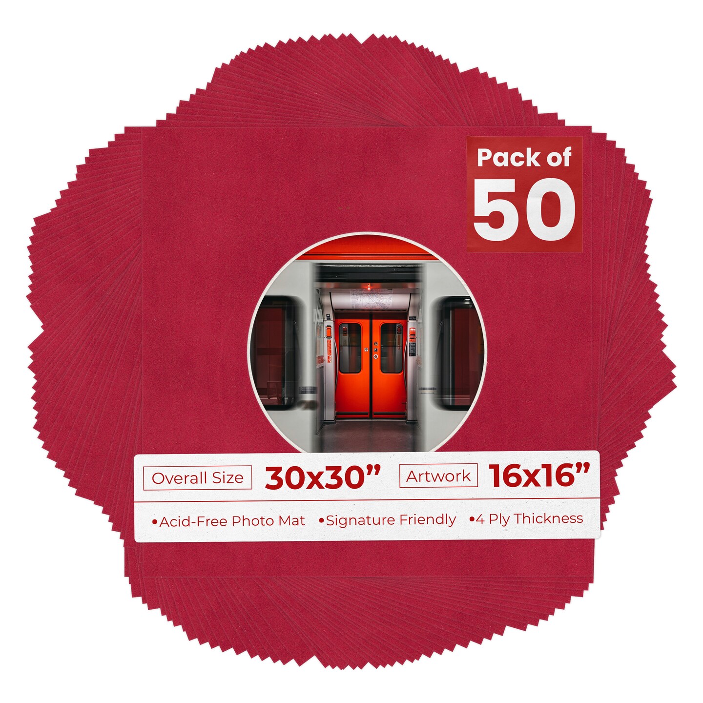 Red Suede Mat Board for 30x30 Frames - Circle Opening for 16x16 Photos