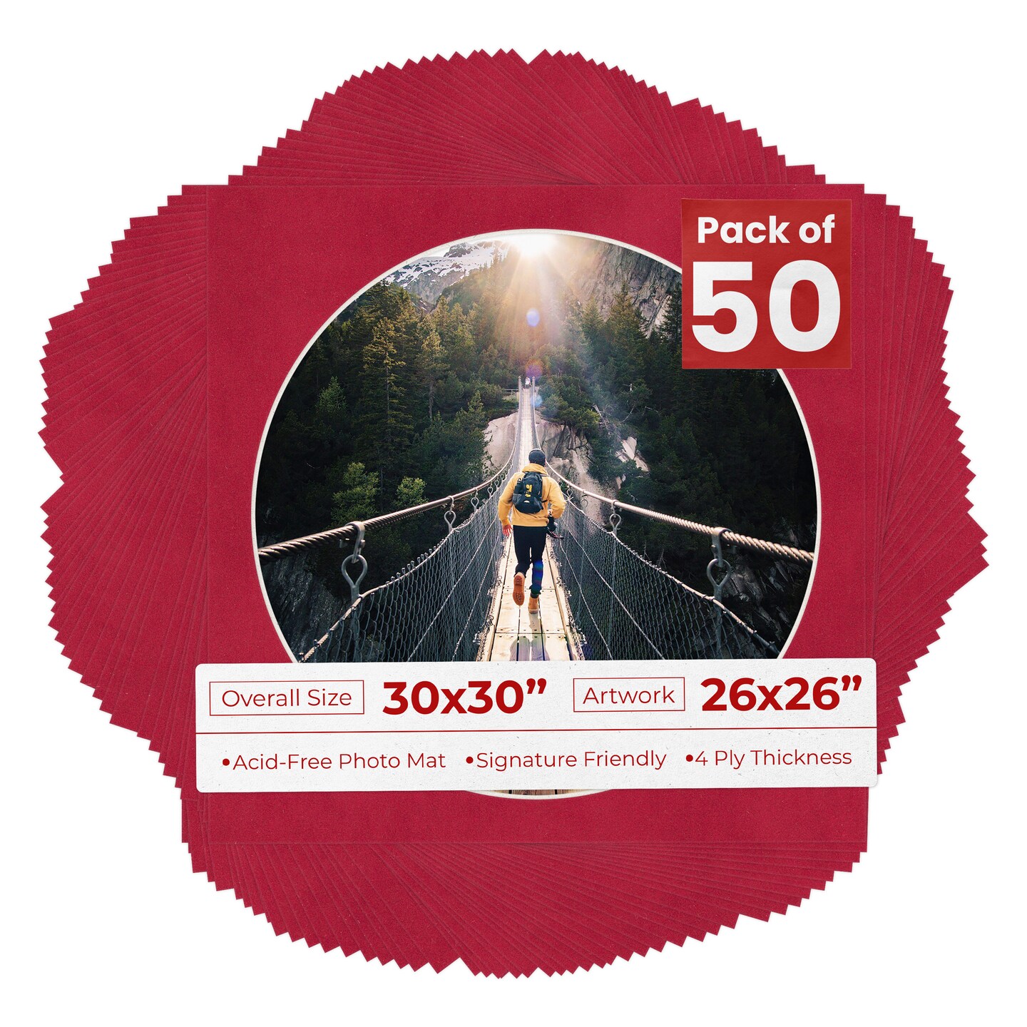 Red Suede Mat Board for 30x30 Frames - Circle Opening for 26x26 Photos