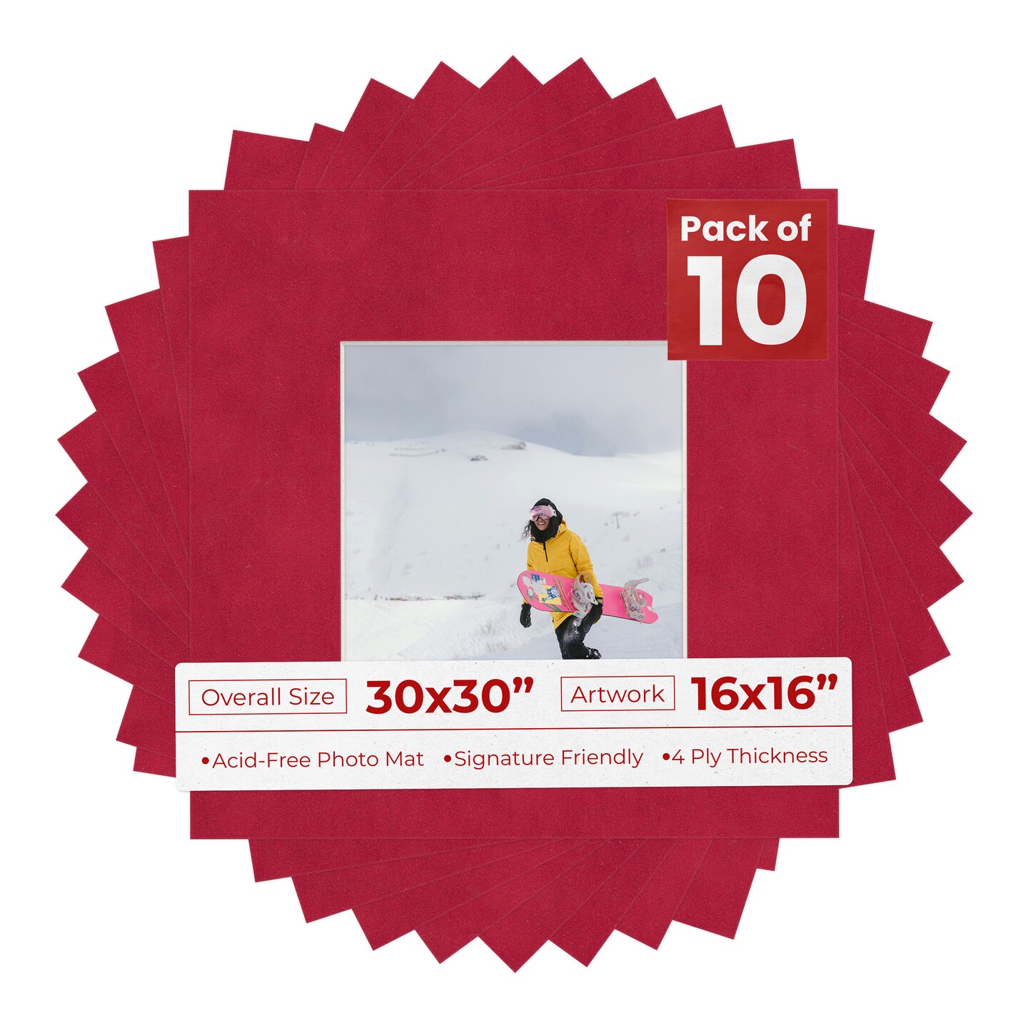Red Suede Mat Board for 30x30 Frames - Fits 16x16 Photos