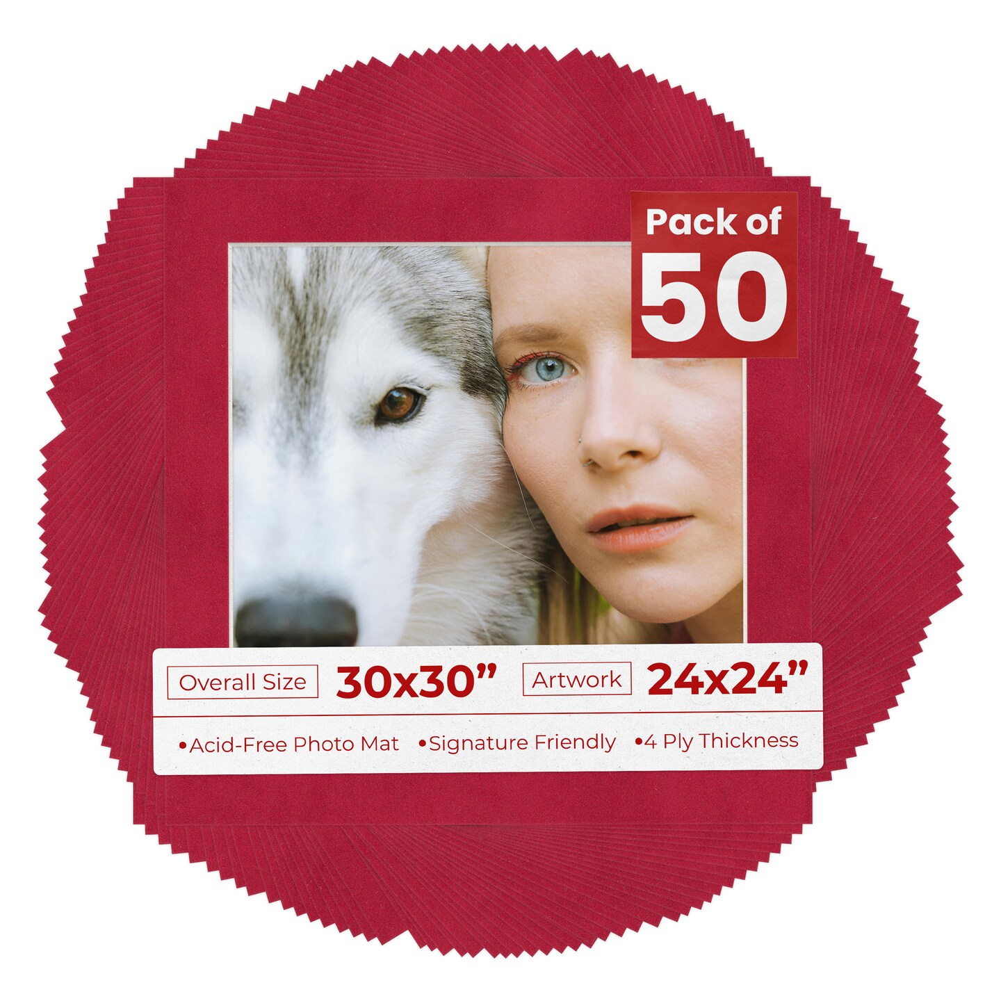 Red Suede Mat Board for 30x30 Frames - Fits 24x24 Photos