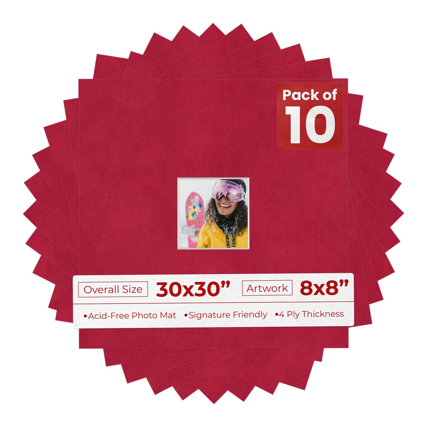 Red Suede Mat Board for 30x30 Frames - Fits 8x8 Photos