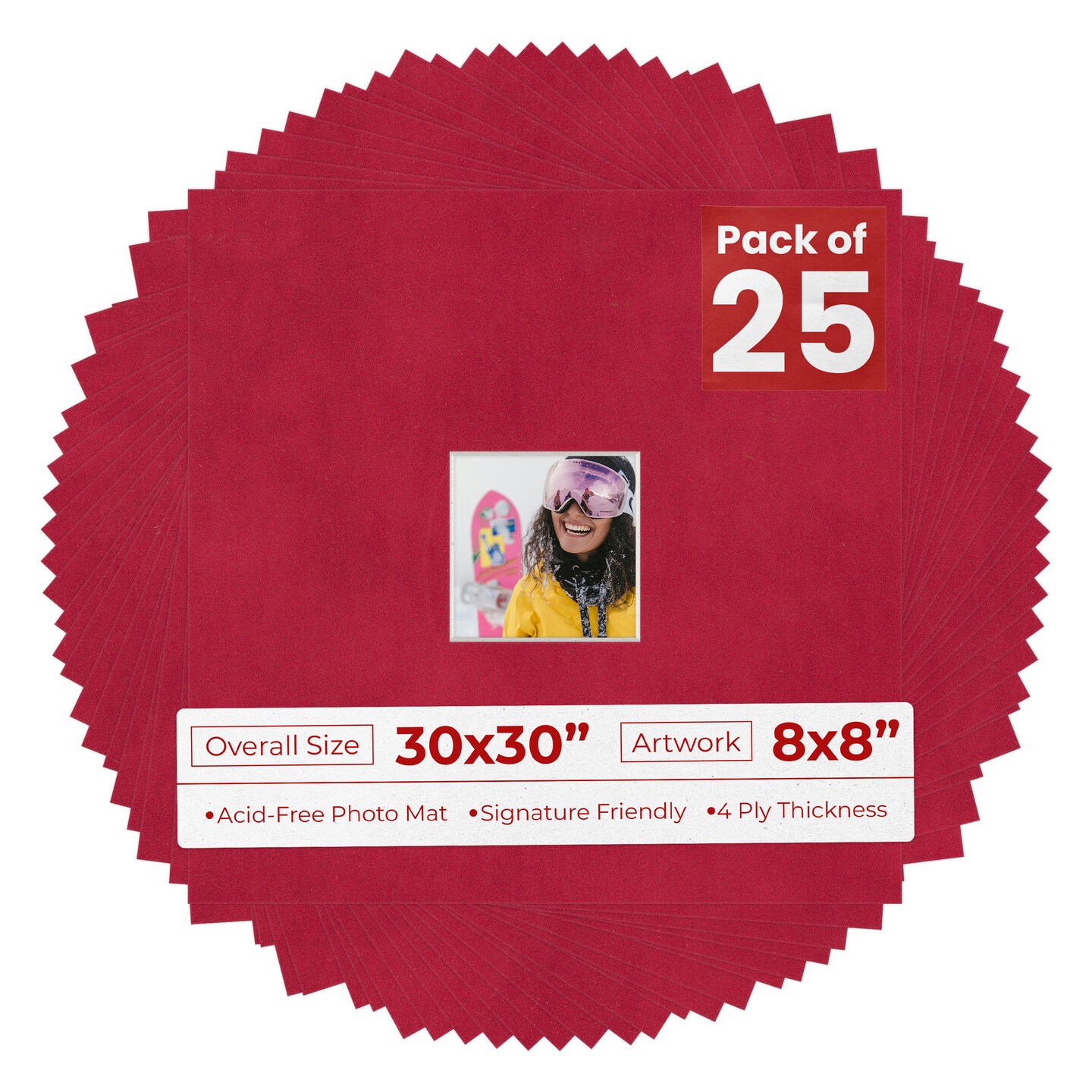 Red Suede Mat Board for 30x30 Frames - Fits 8x8 Photos