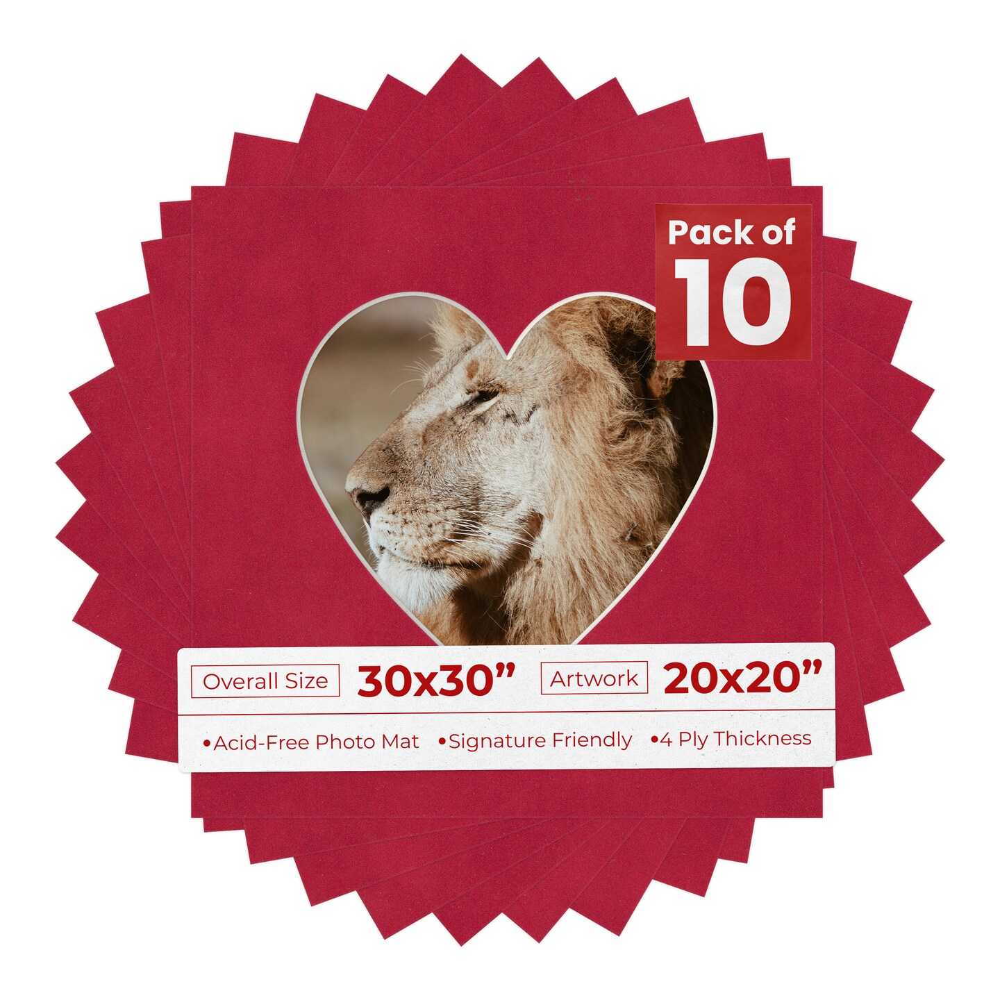 Red Suede Mat Board for 30x30 Frames - Heart Opening for 20x20 Photos