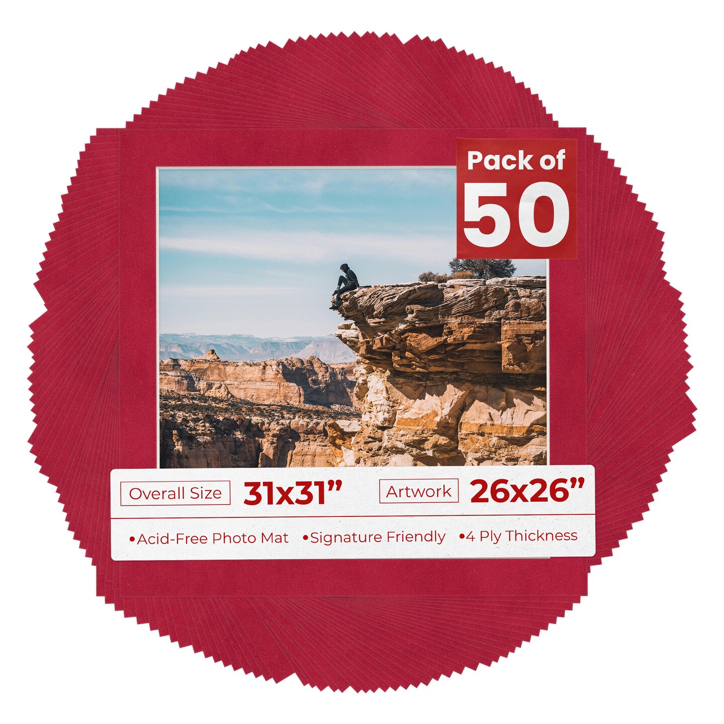 Red Suede Mat Board for 31x31 Frames - Fits 26x26 Photos