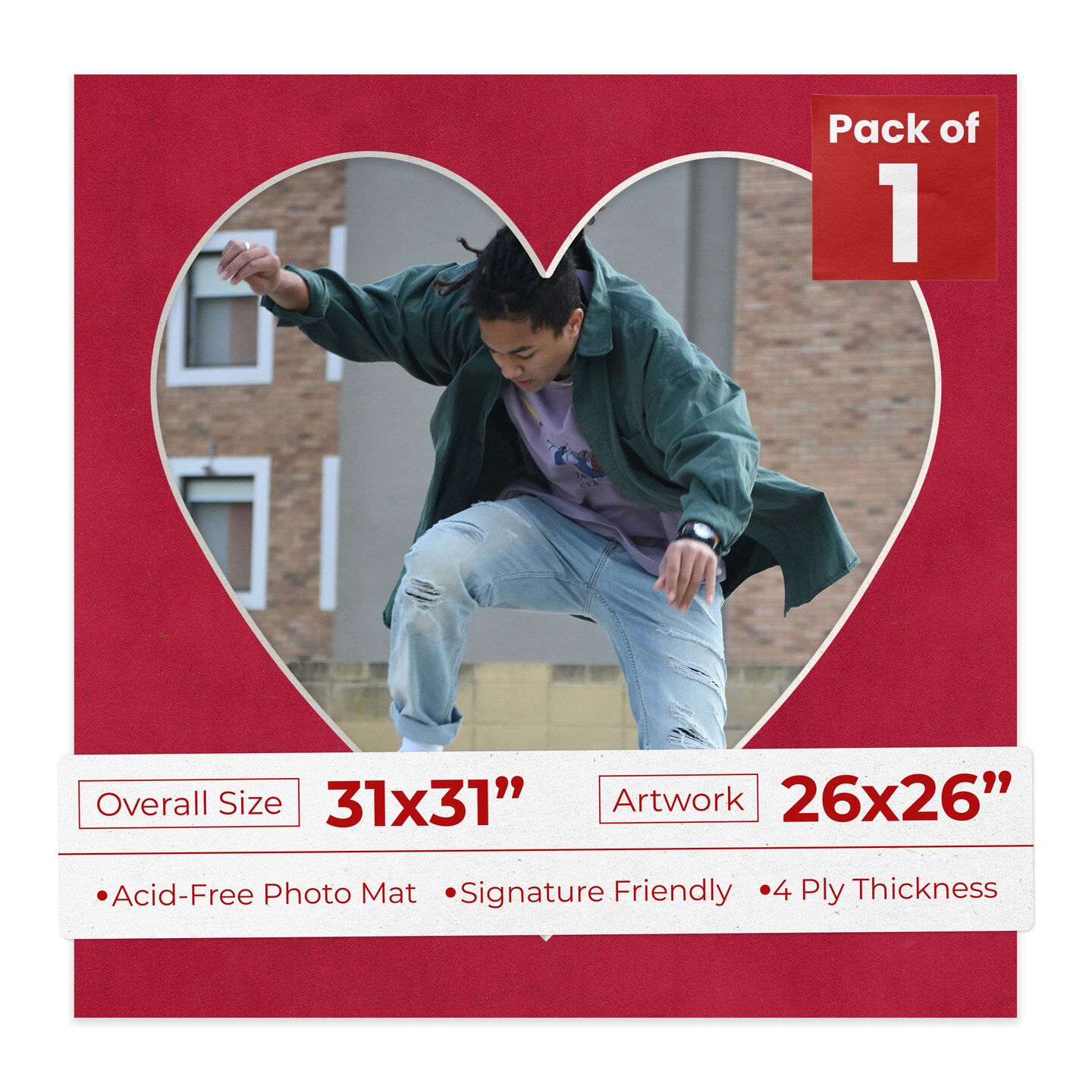 Red Suede Mat Board for 31x31 Frames - Heart Opening for 26x26 Photos