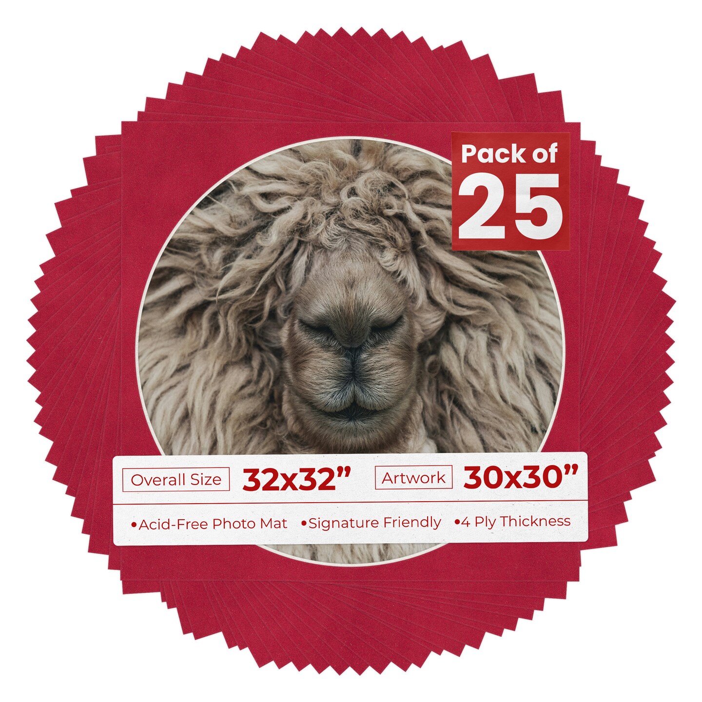 Red Suede Mat Board for 32x32 Frames - Circle Opening for 30x30 Photos
