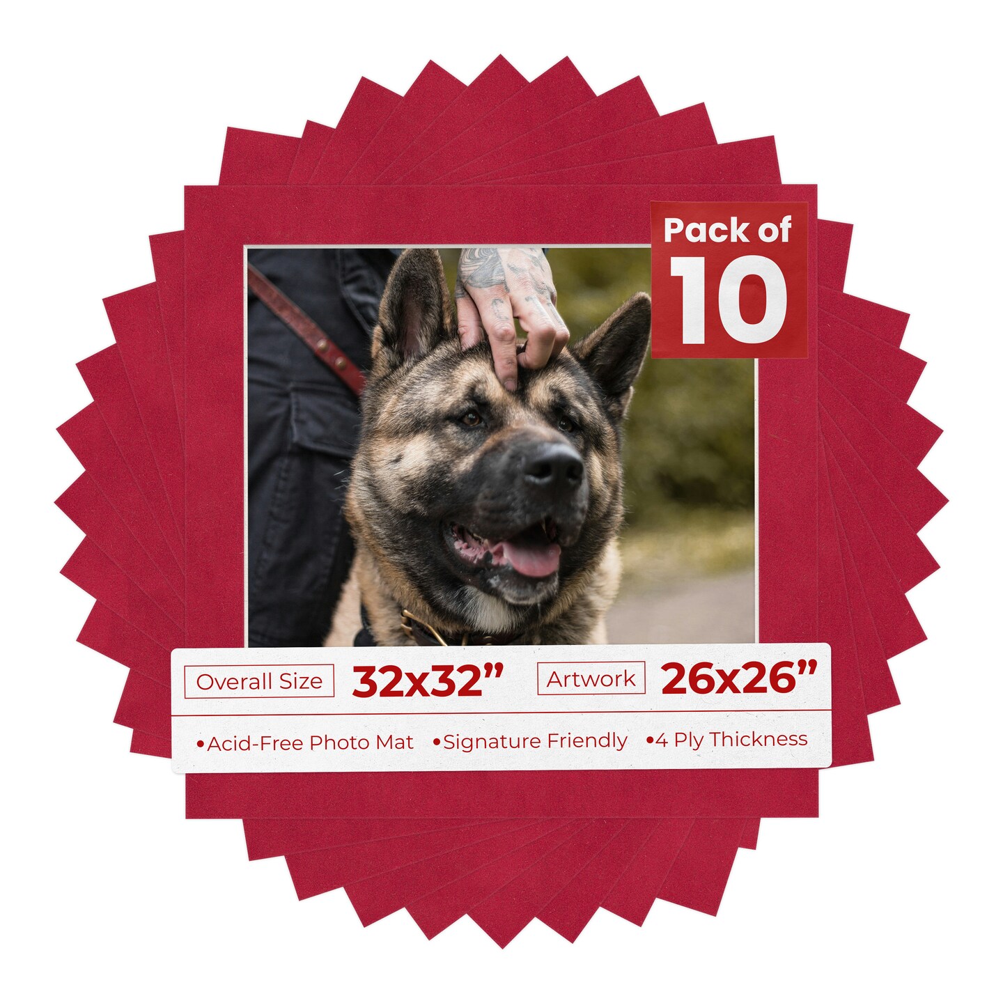 Red Suede Mat Board for 32x32 Frames - Fits 26x26 Photos