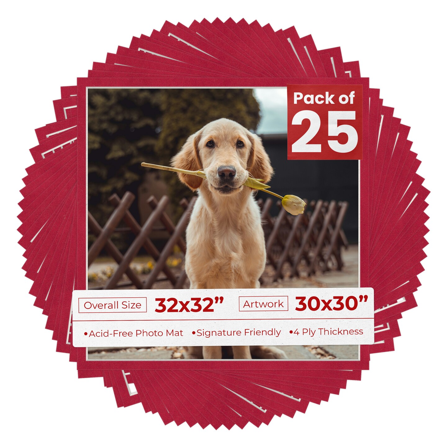 Red Suede Mat Board for 32x32 Frames - Fits 30x30 Photos