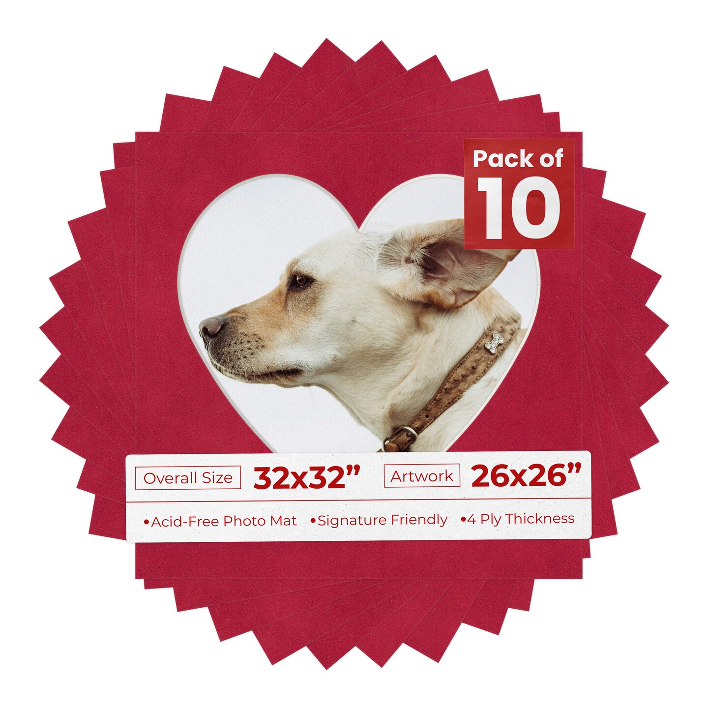 Red Suede Mat Board for 32x32 Frames - Heart Opening for 26x26 Photos