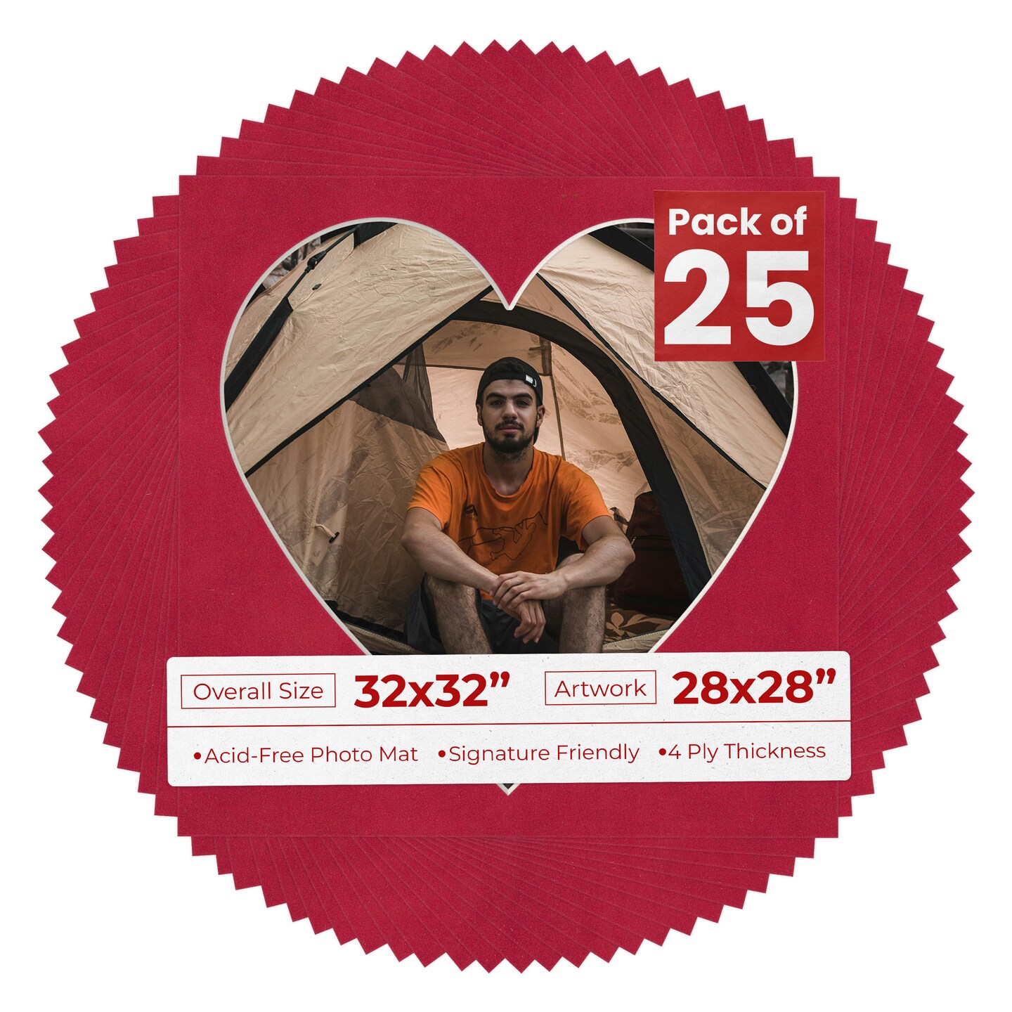 Red Suede Mat Board for 32x32 Frames - Heart Opening for 28x28 Photos