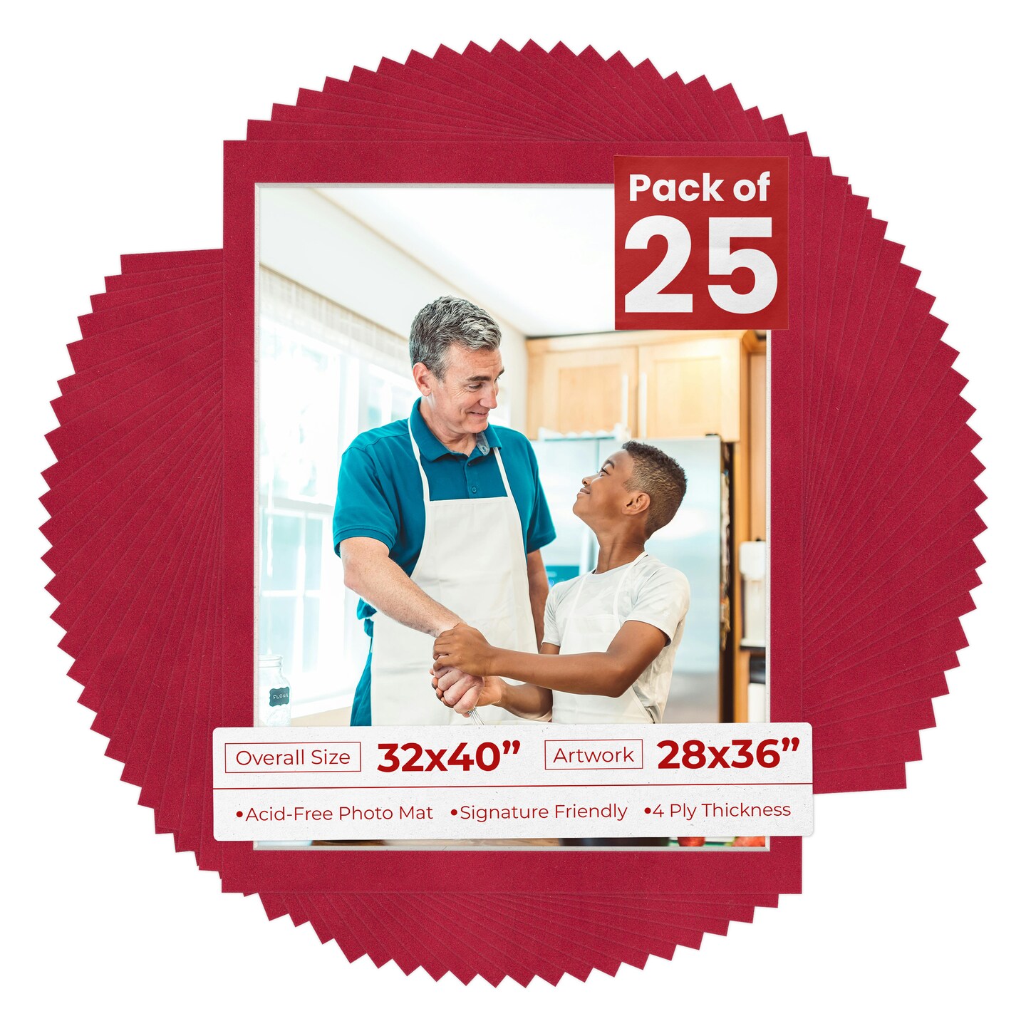 Red Suede Mat Board for 32x40 Frames - Fits 28x36 Photos