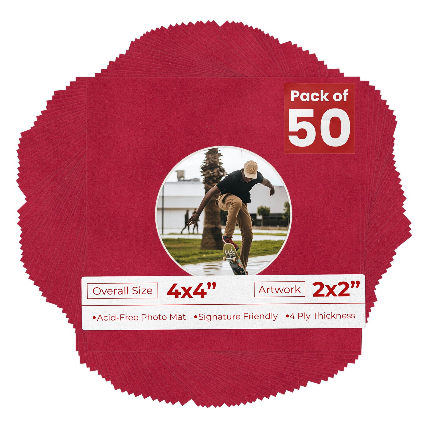 Red Suede Mat Board for 4x4 Inch Frames - Circle Opening for 2x2 Photos