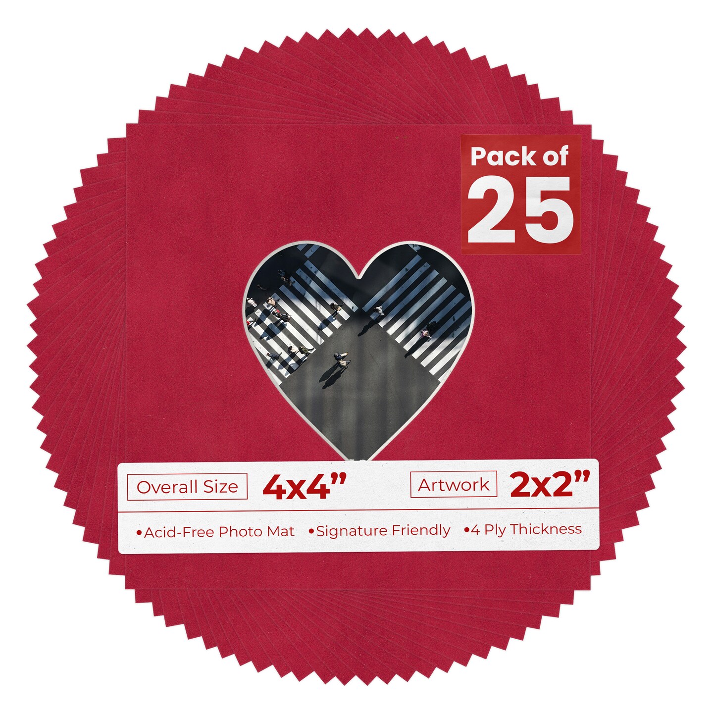 Red Suede Mat Board for 4x4 Inch Frames - Heart Opening for 2x2 Photos