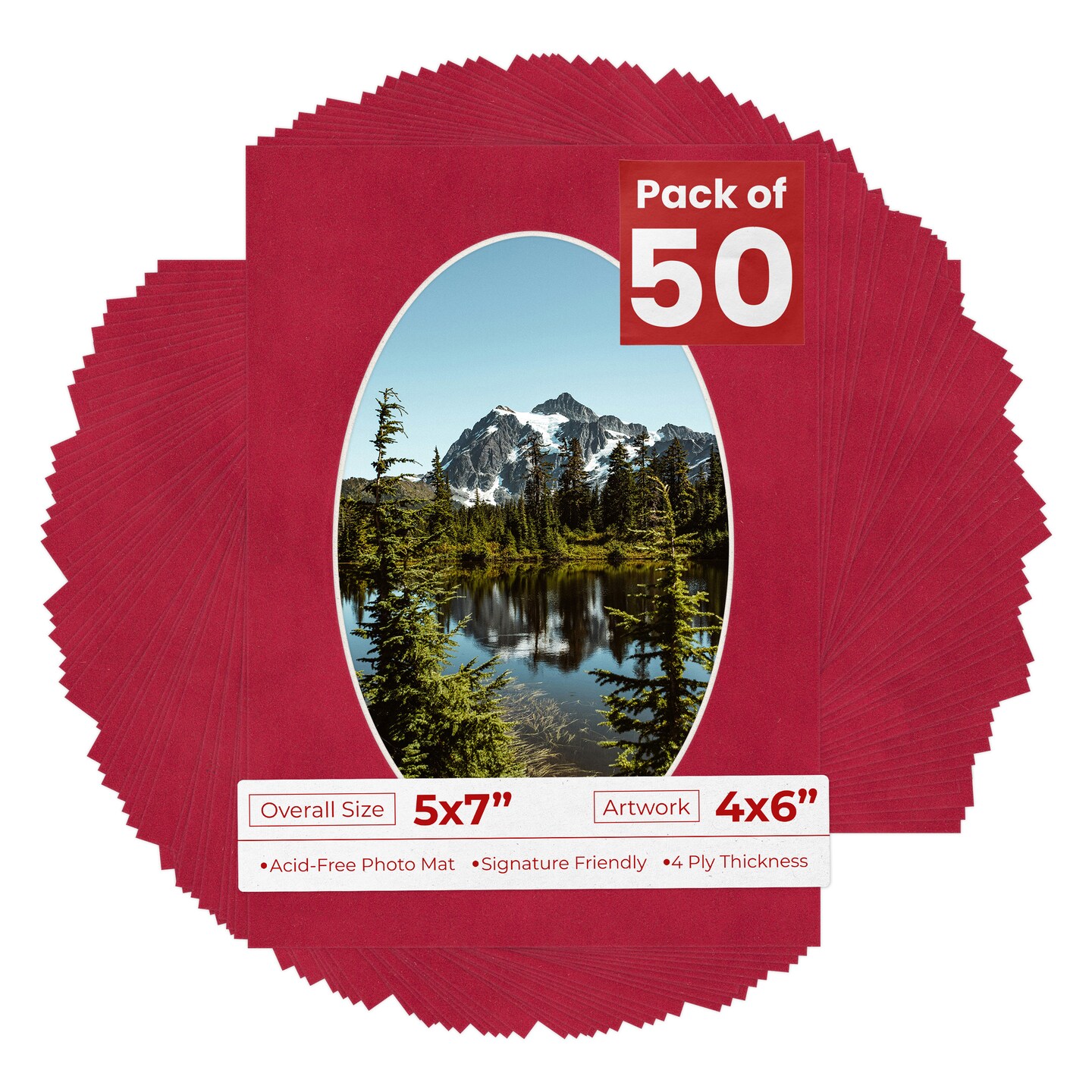 Red Suede Mat Board for 5x7 Frames - Oval Opening for 4x6 Photos