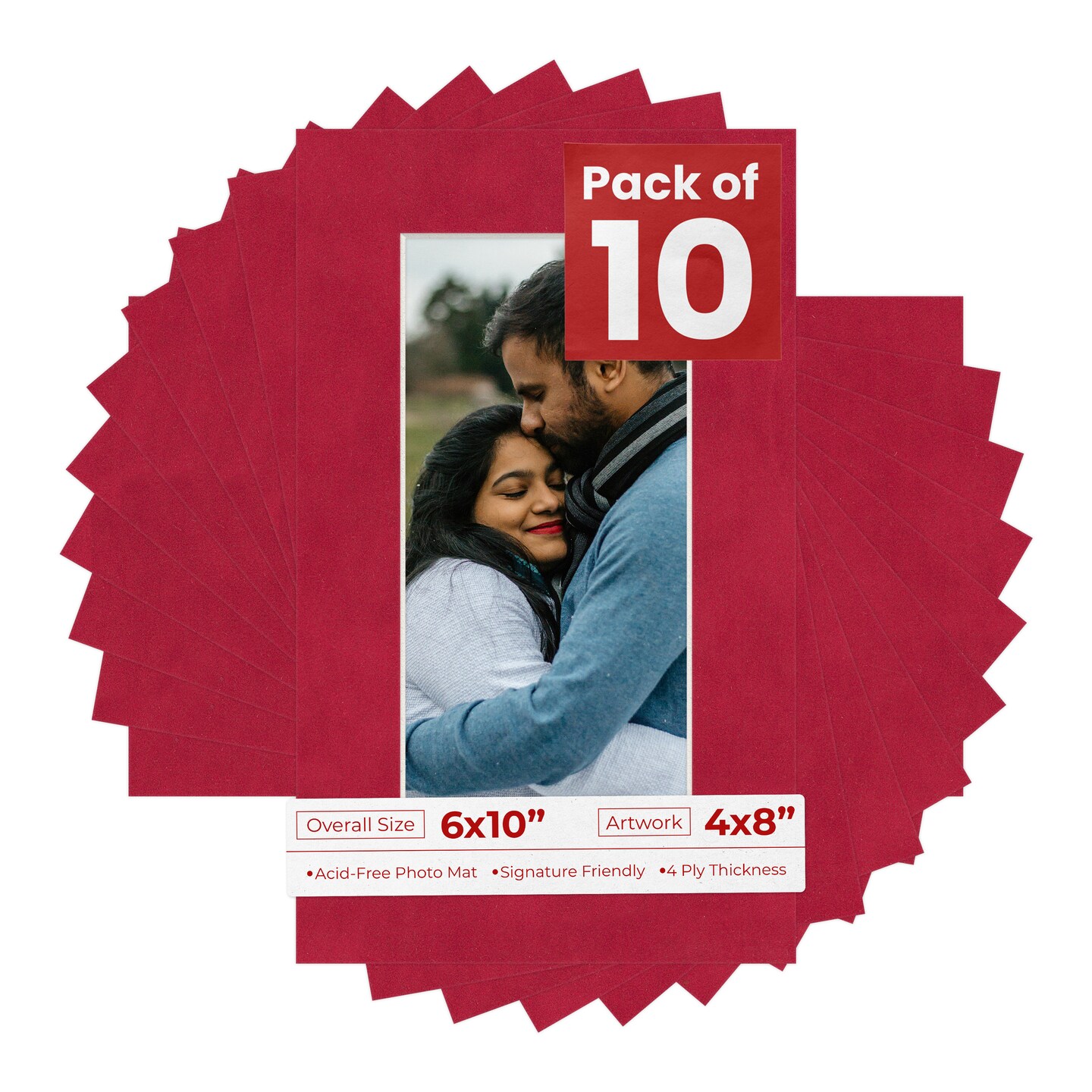 Red Suede Mat Board for 6x10 Frames - Fits 4x8 Photos