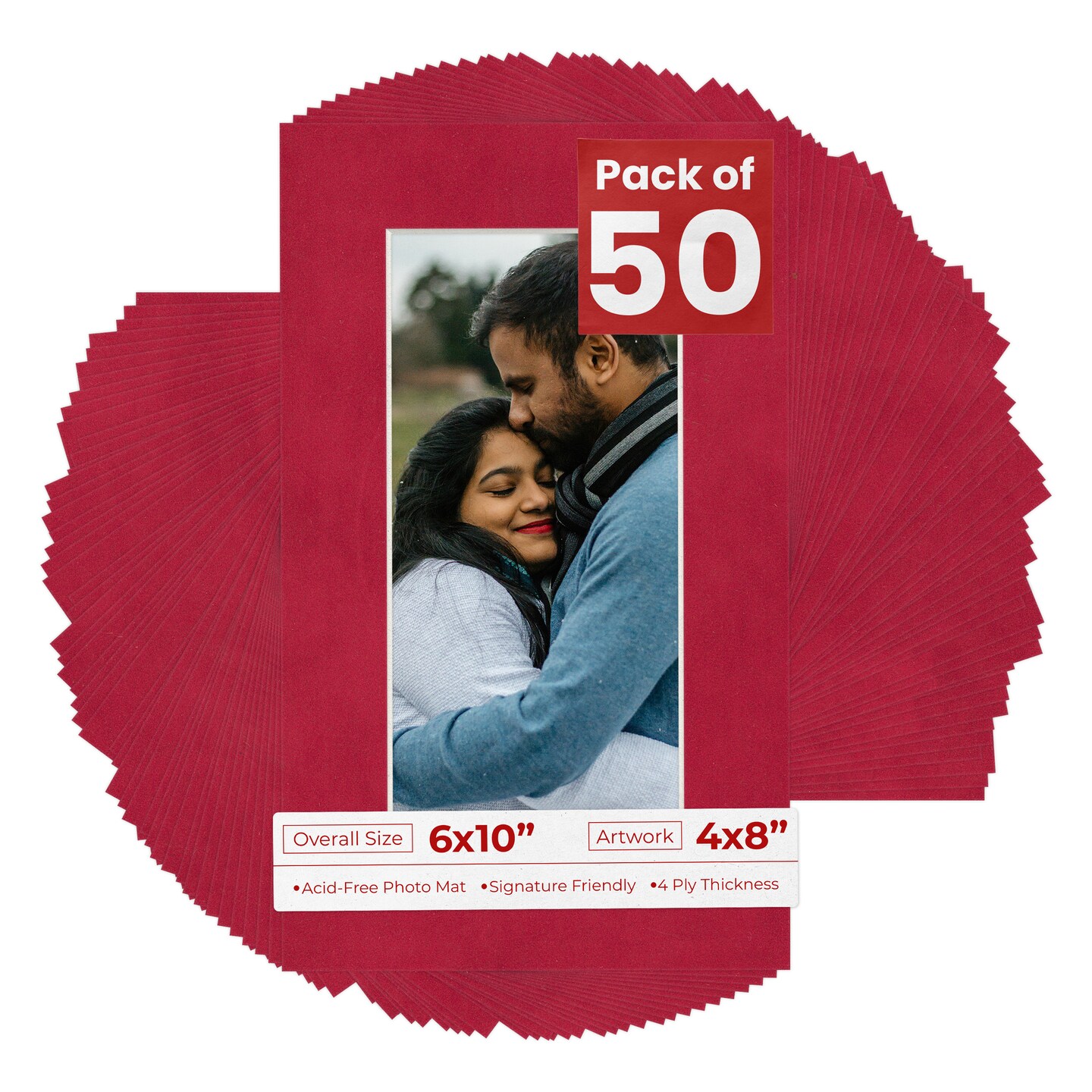 Red Suede Mat Board for 6x10 Frames - Fits 4x8 Photos