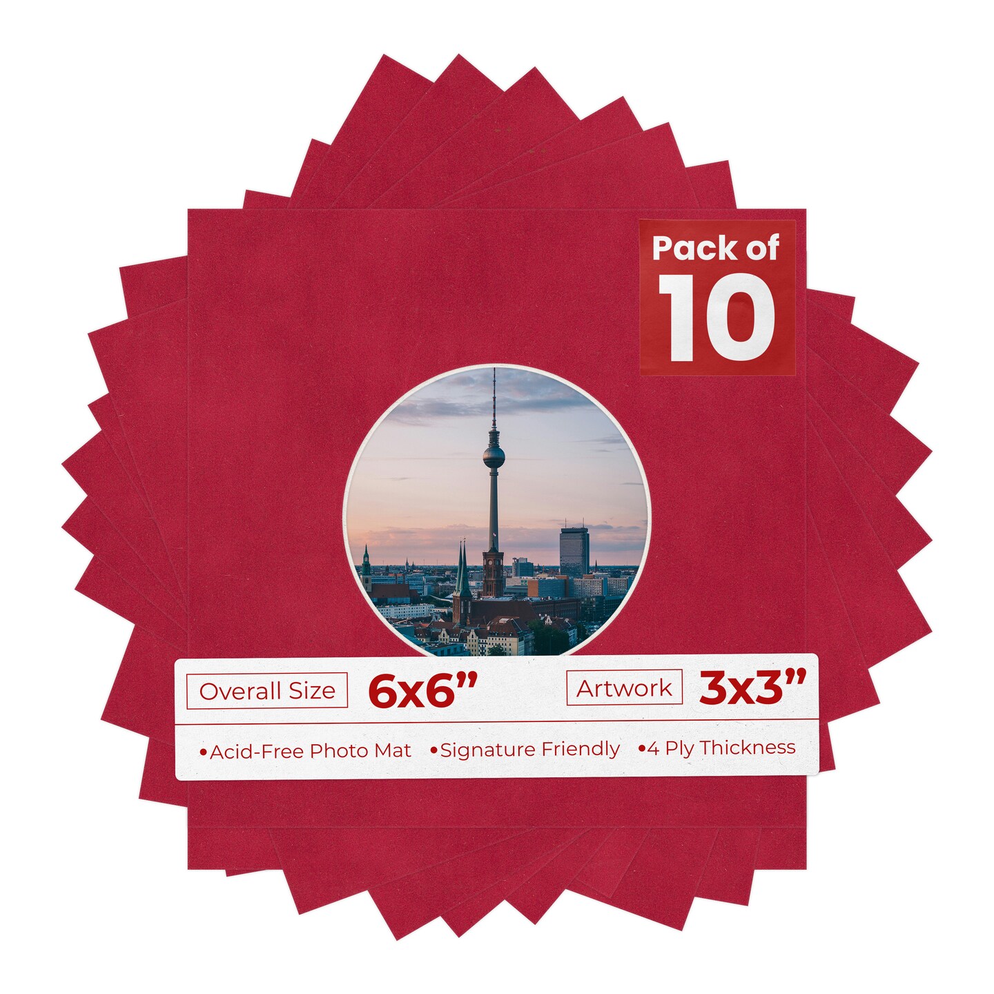 Red Suede Mat Board for 6x6 Frames - Circle Opening for 3x3 Photos