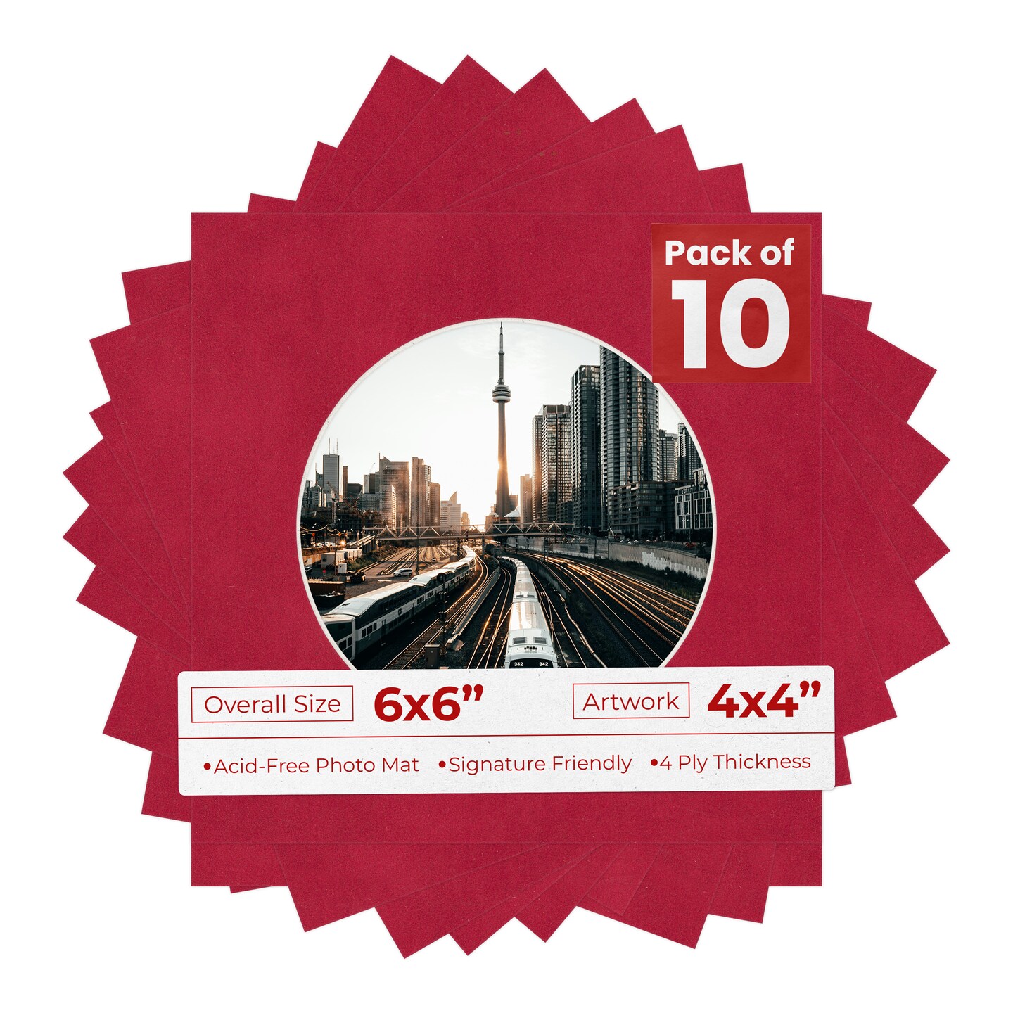 Red Suede Mat Board for 6x6 Frames - Circle Opening for 4x4 Photos
