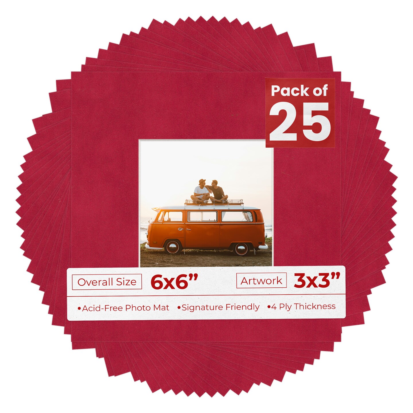 Red Suede Mat Board for 6x6 Frames - Fits 3x3 Photos
