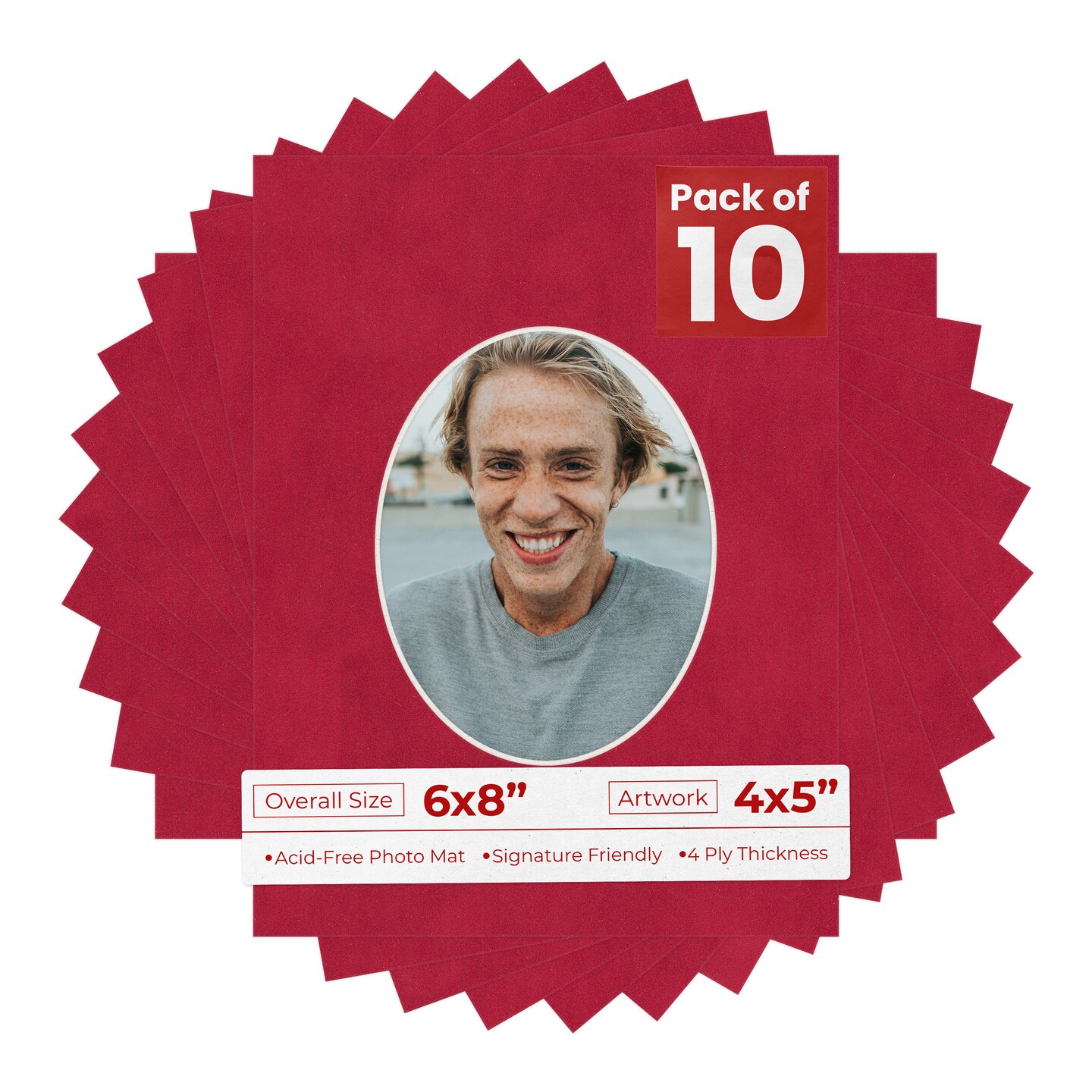 Red Suede Mat Board for 6x8 Frames - Oval Opening for 4x5 Photos