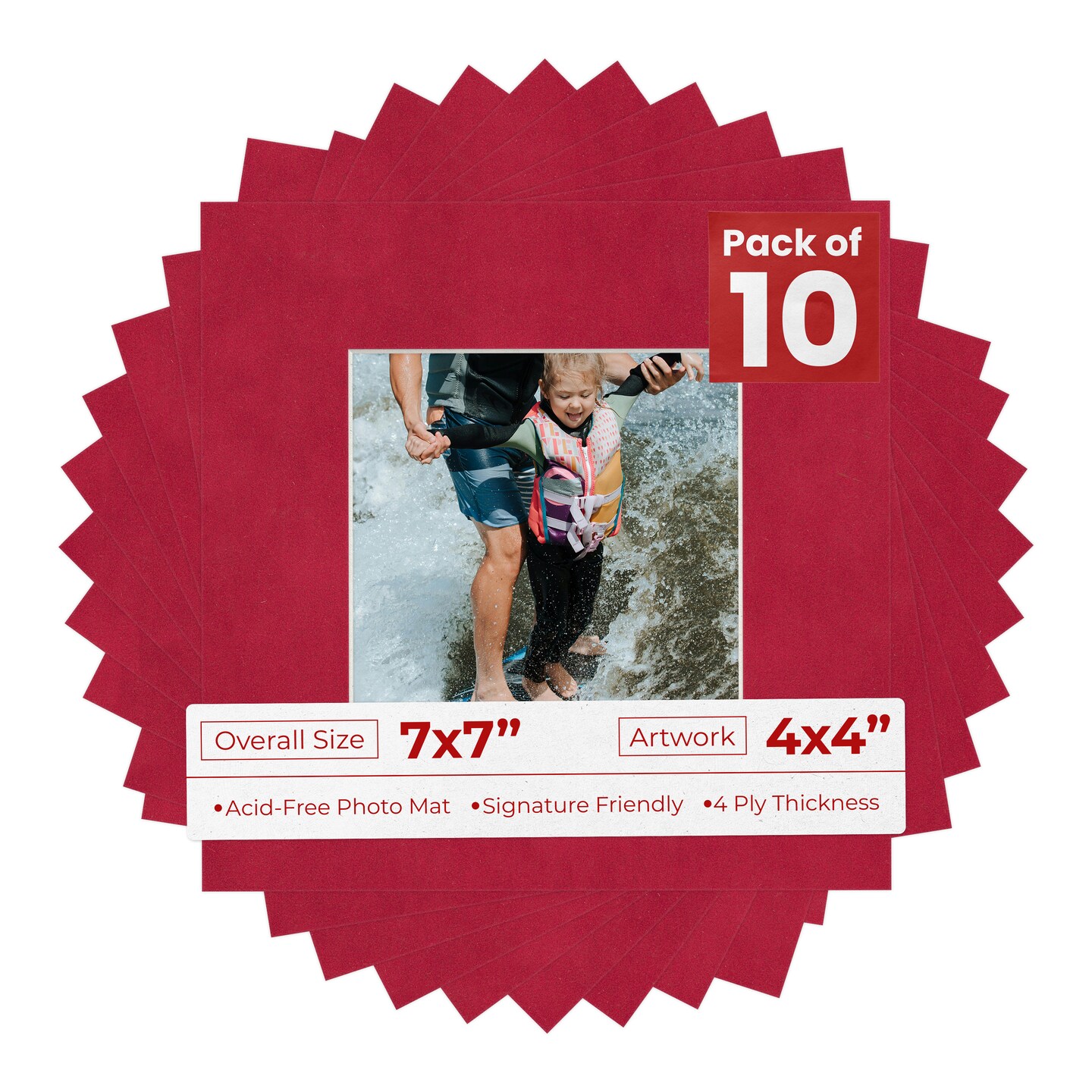 Red Suede Mat Board for 7x7 Frames - Fits 4x4 Photos
