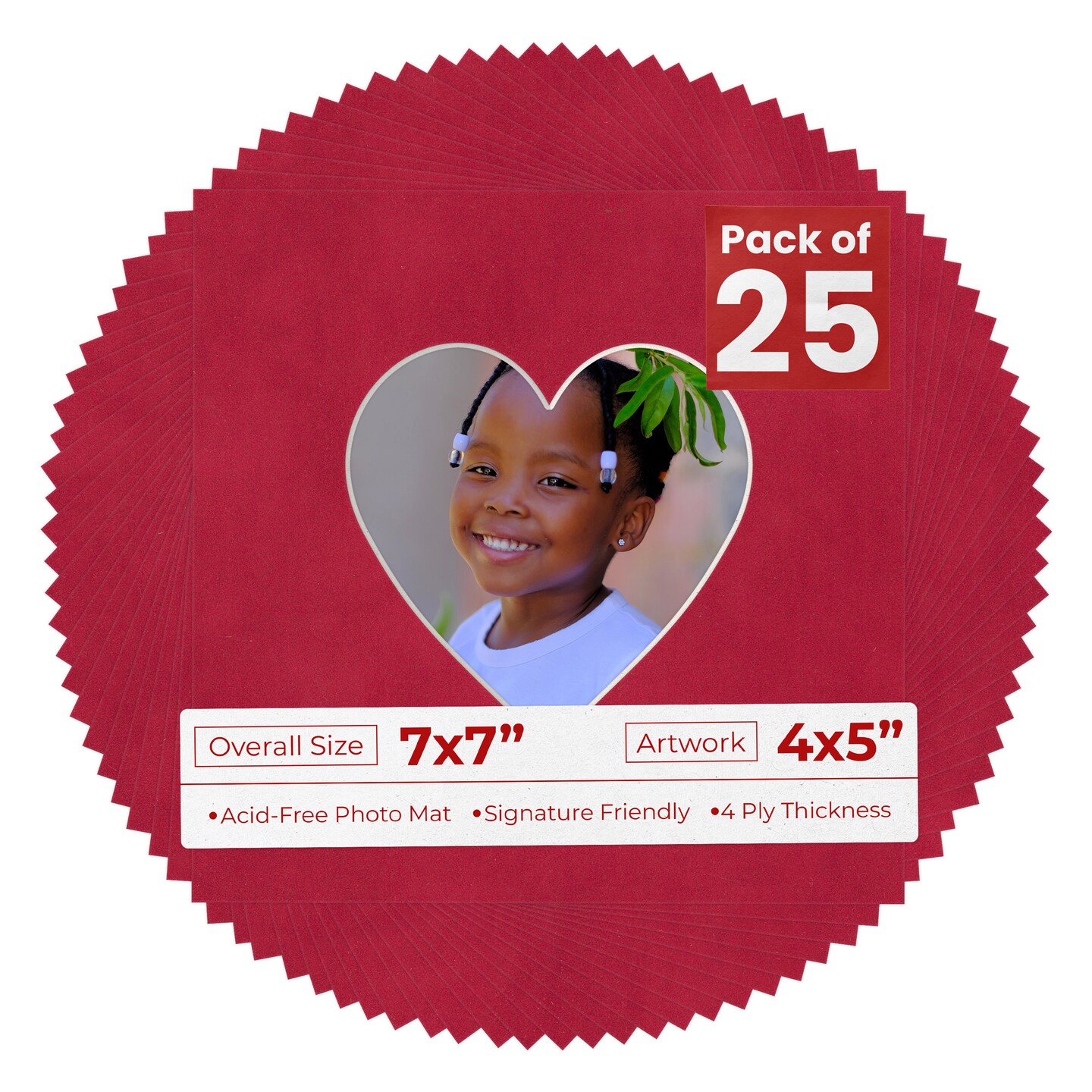 Red Suede Mat Board for 7x7 Frames - Heart Opening for 4x5 Photos