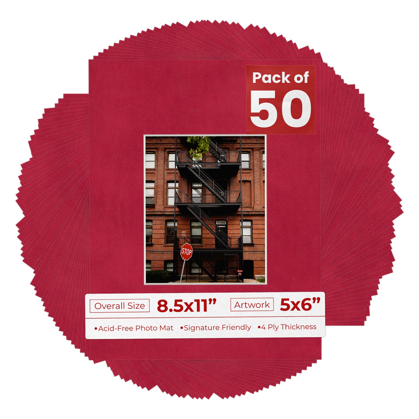 Red Suede Mat Board for 8.5x11 Frames - Fits 5x6 Photos