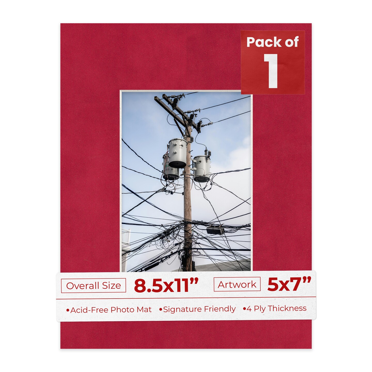 Red Suede Mat Board for 8.5x11 Frames - Fits 5x7 Photos