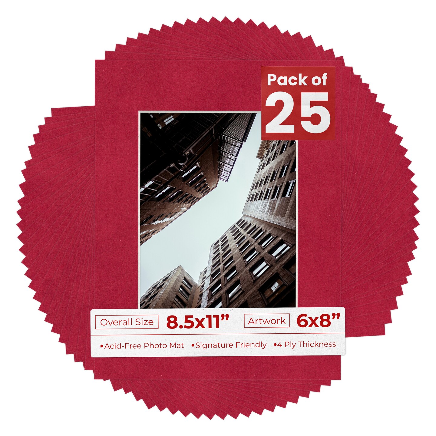 Red Suede Mat Board for 8.5x11 Frames - Fits 6x8 Photos