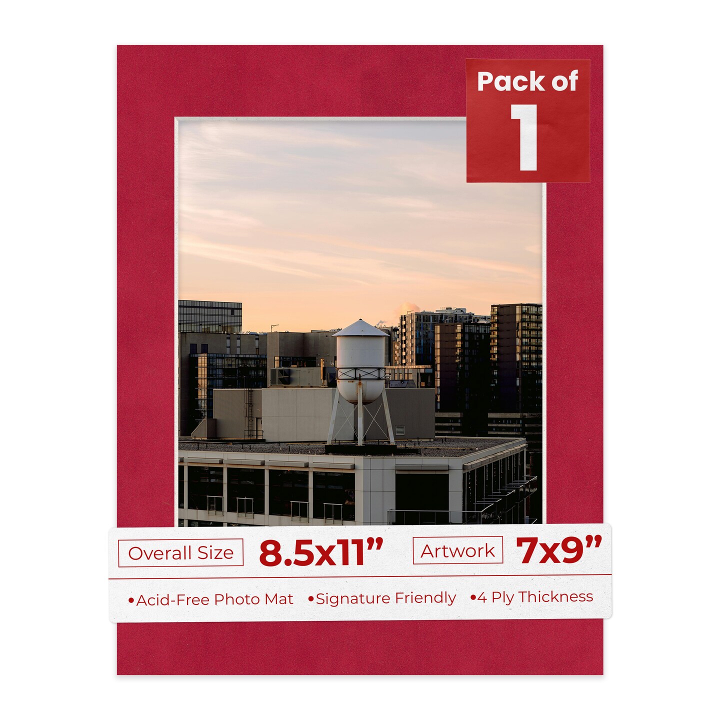 Red Suede Mat Board for 8.5x11 Frames - Fits 7x9 Photos