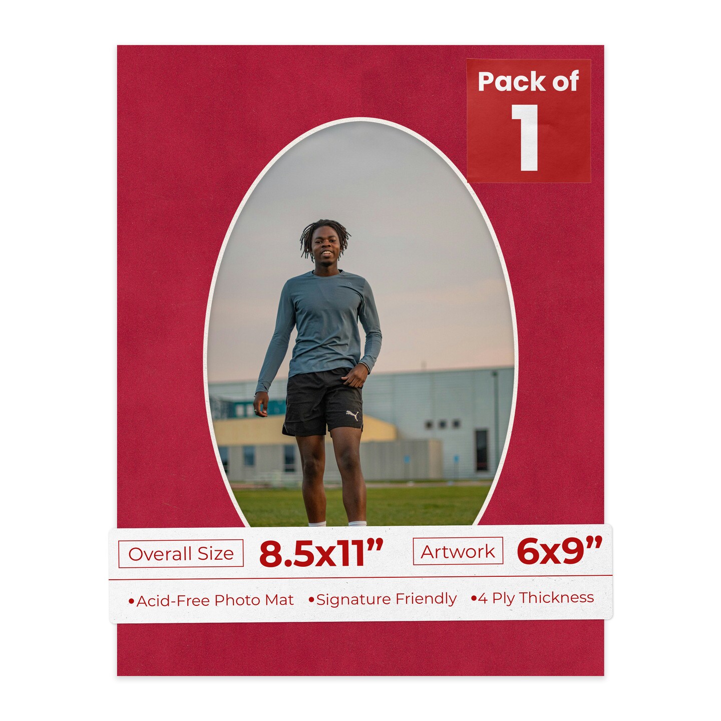 Red Suede Mat Board for 8.5x11 Frames - Oval Opening for 6x9 Photos