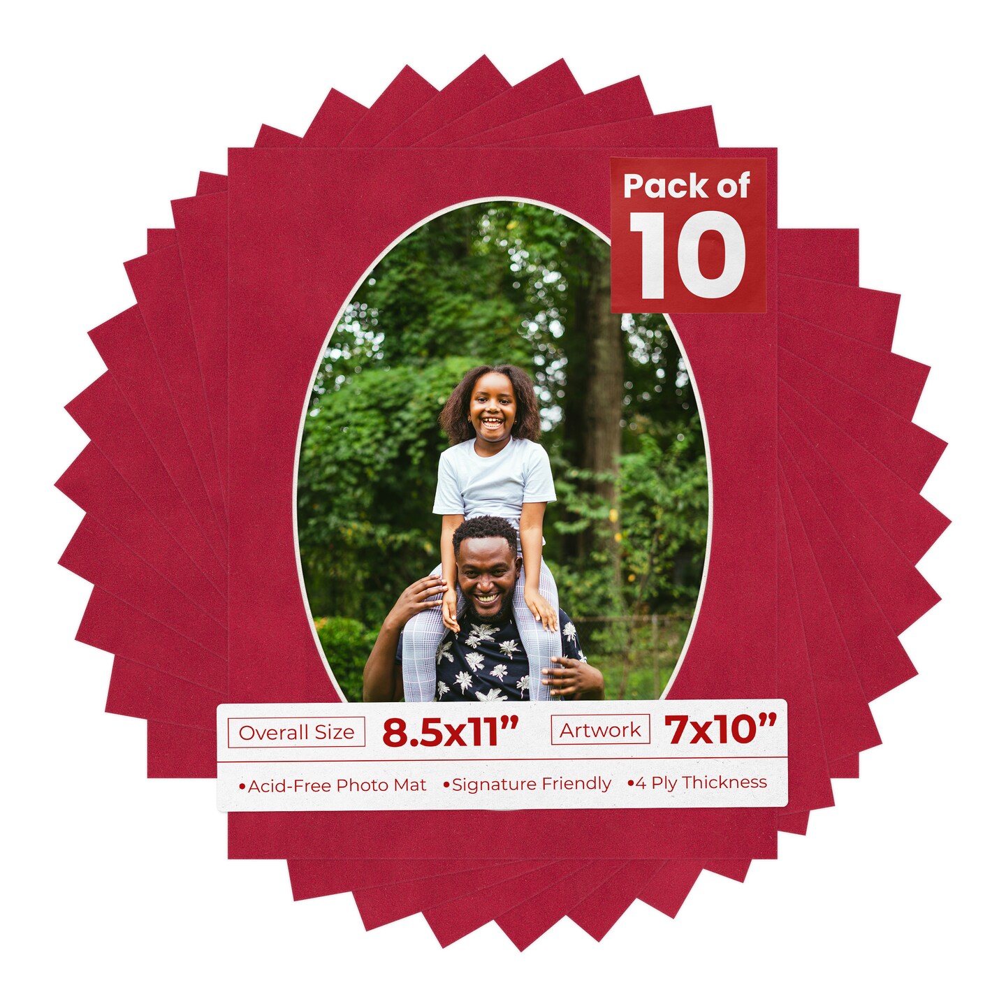 Red Suede Mat Board for 8.5x11 Frames - Oval Opening for 7x10 Photos