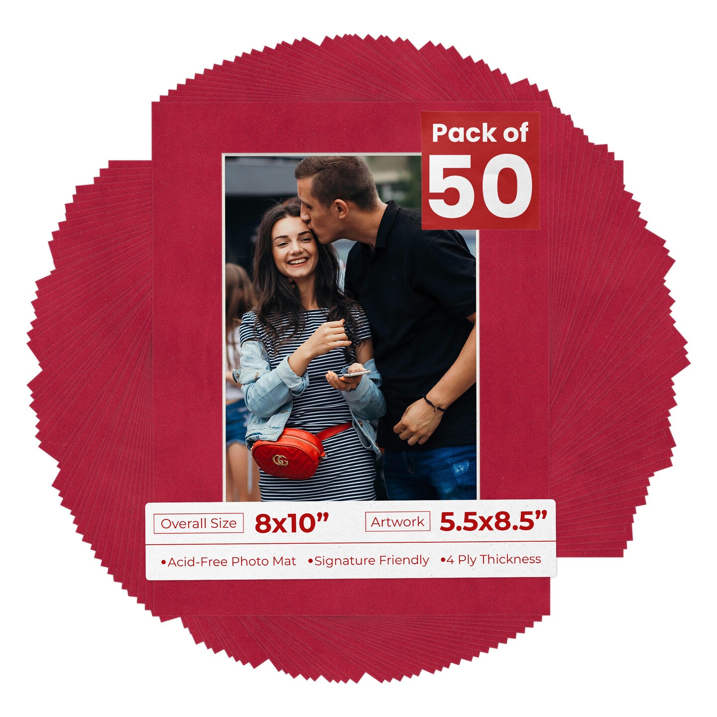 Red Suede Mat Board for 8x10 Frames - Fits 5.5x8.5 Photos