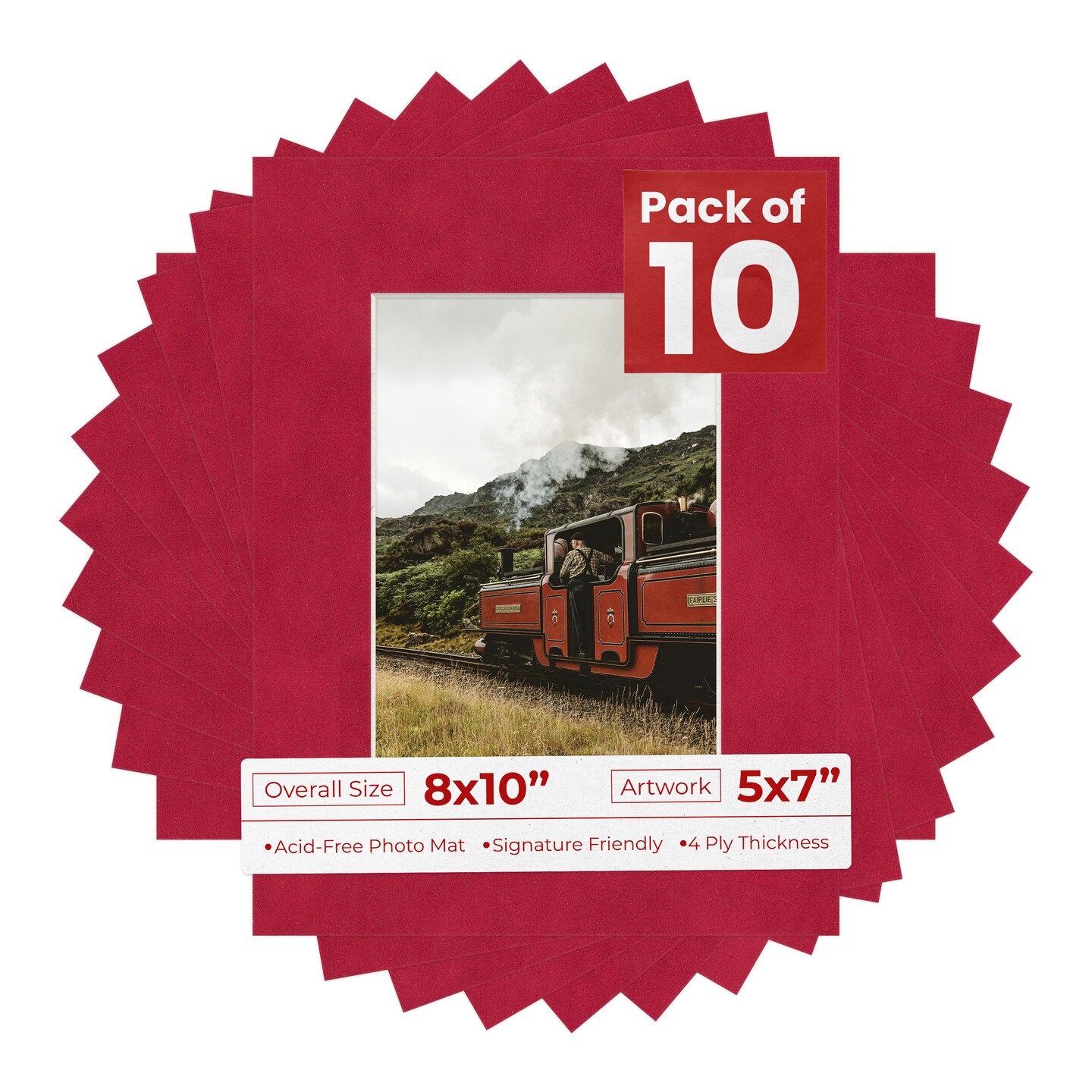 Red Suede Mat Board for 8x10 Frames - Fits 5x7 Photos