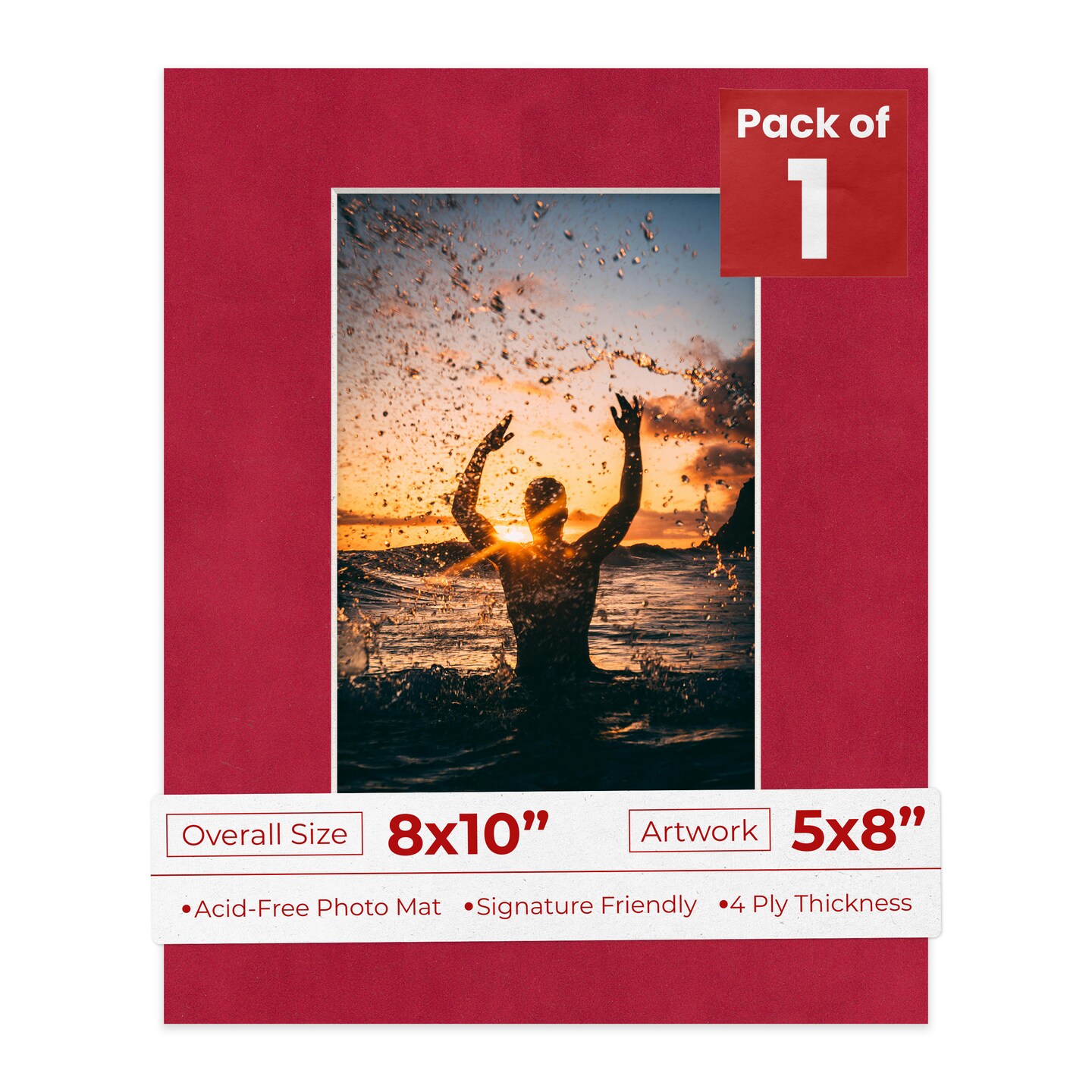 Red Suede Mat Board for 8x10 Frames - Fits 5x8 Photos
