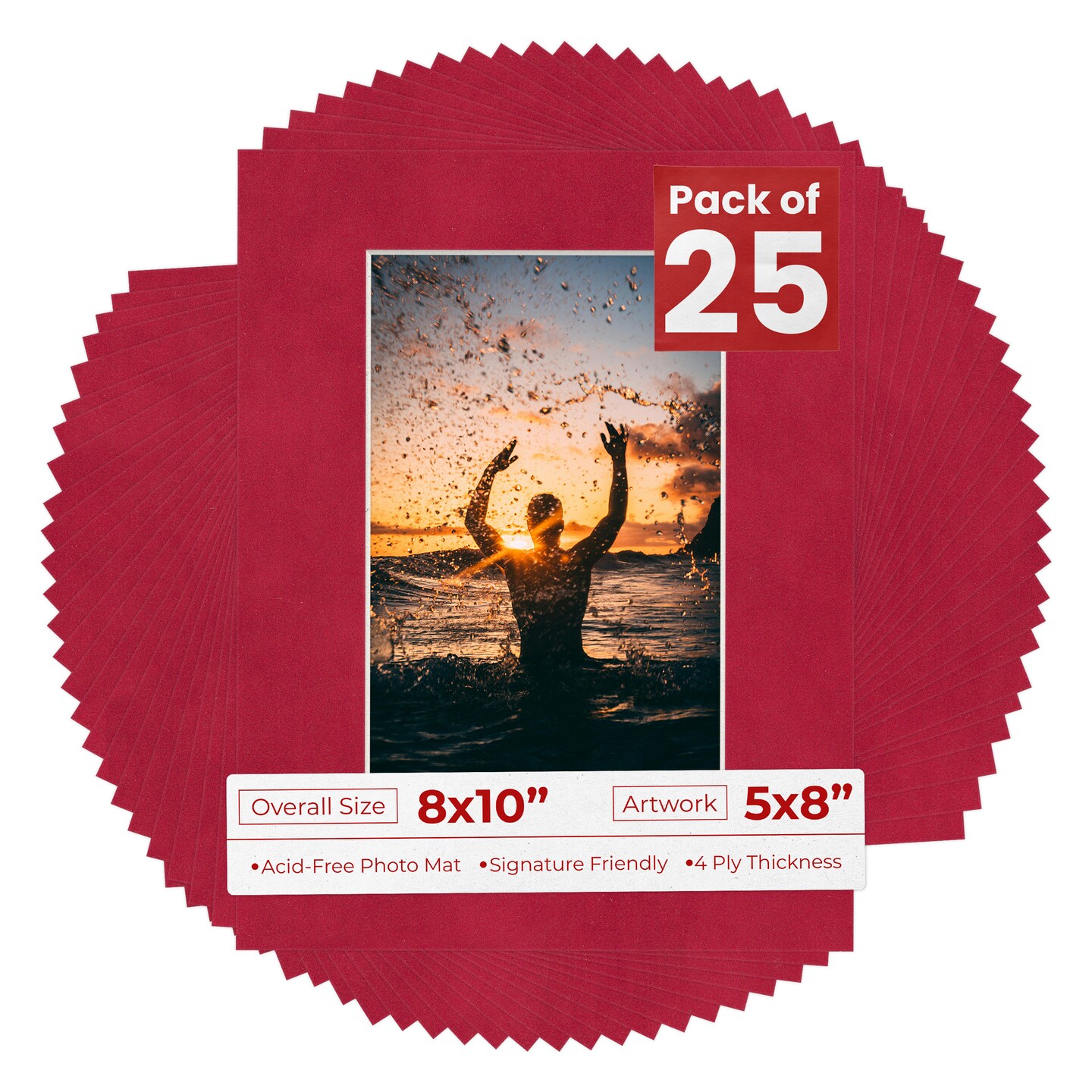Red Suede Mat Board for 8x10 Frames - Fits 5x8 Photos