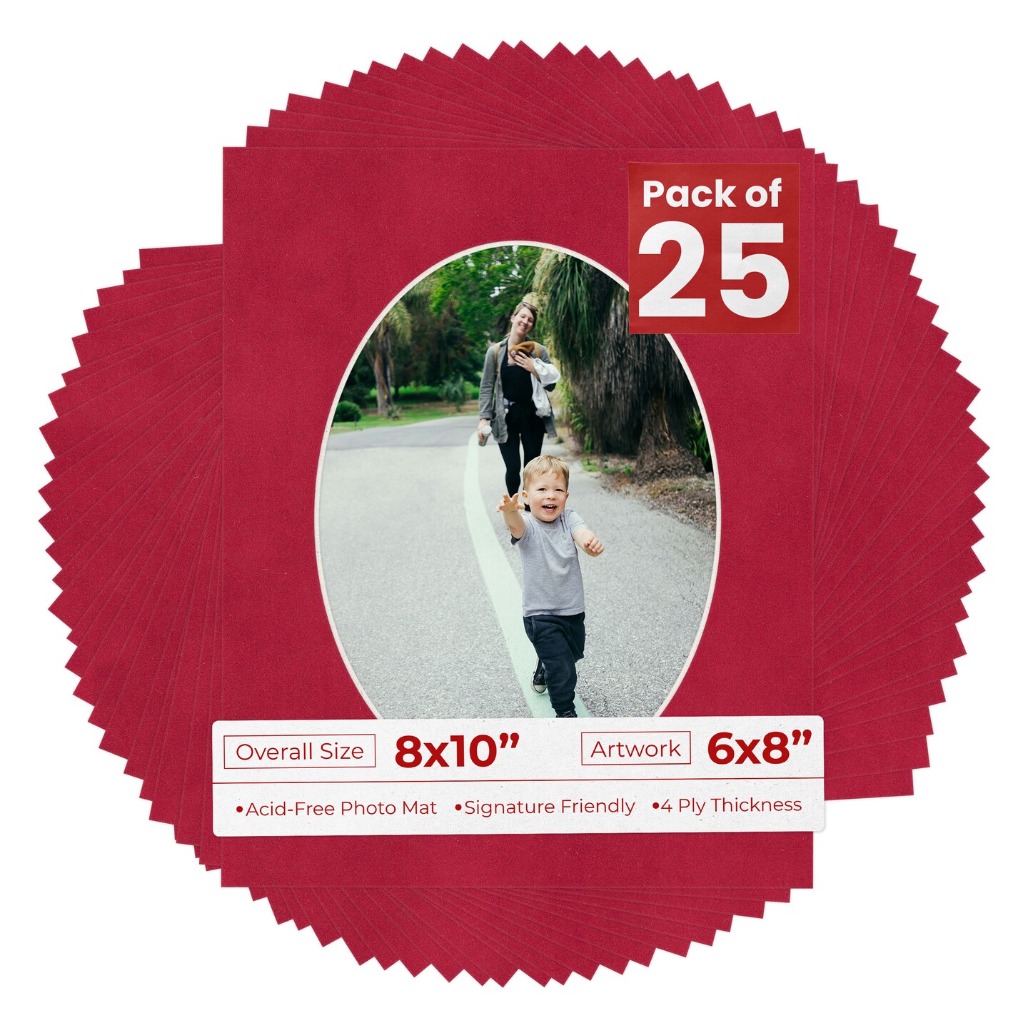 Red Suede Mat Board for 8x10 Frames - Oval Opening for 6x8 Photos