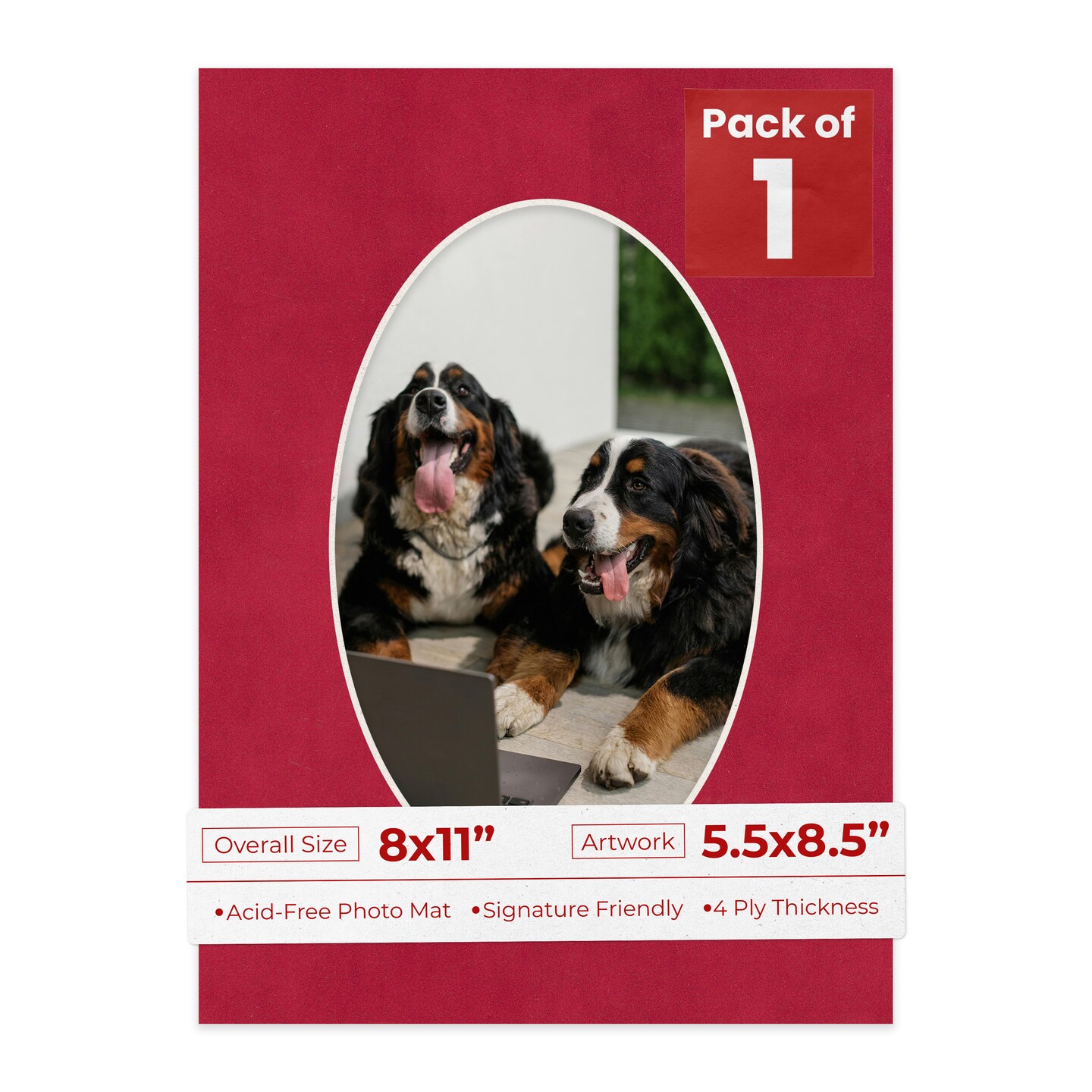 Red Suede Mat Board for 8x11 Frames - Oval Opening for 5.5x8.5 Photos