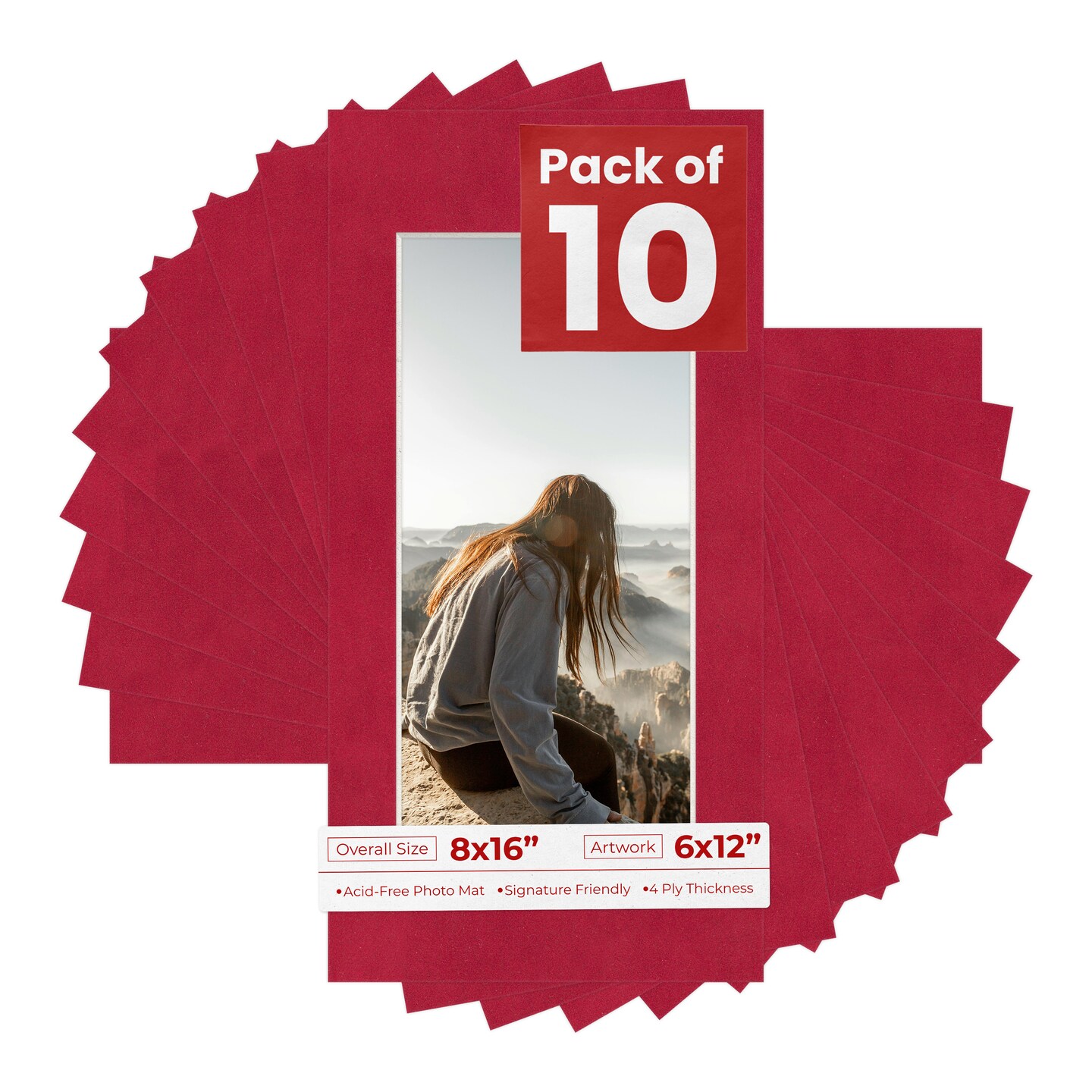Red Suede Mat Board for 8x16 Frames - Fits 6x12 Photos