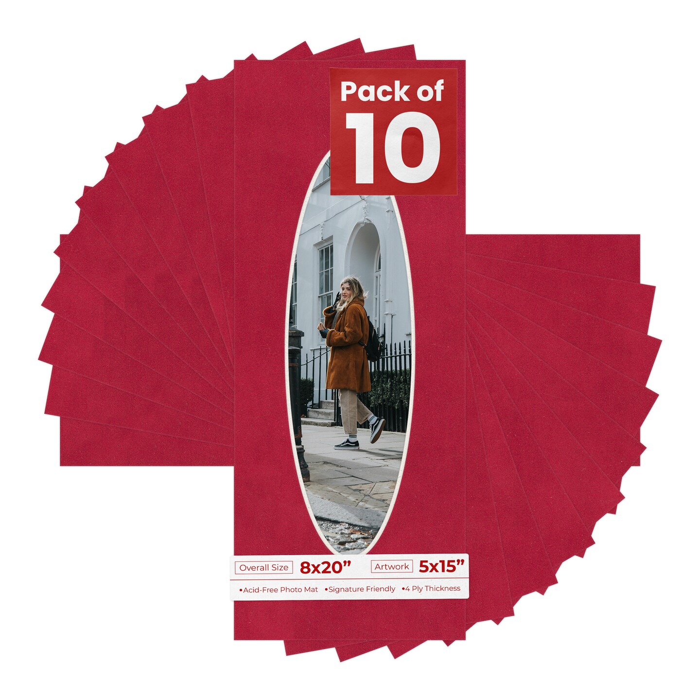 Red Suede Mat Board for 8x20 Frames - Oval Opening for 5x15 Photos