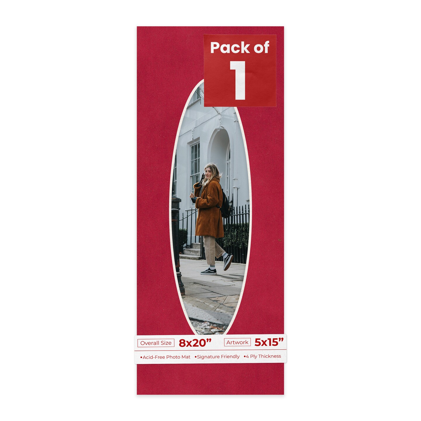 Red Suede Mat Board for 8x20 Frames - Oval Opening for 5x15 Photos