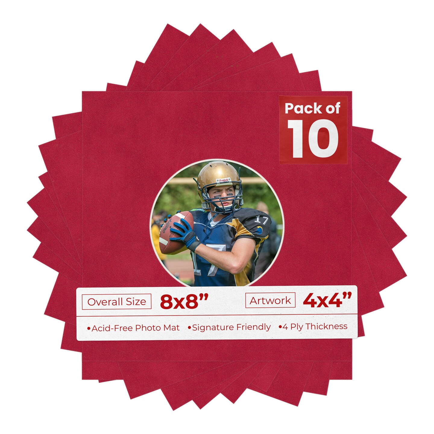 Red Suede Mat Board for 8x8 Frames - Circle Opening for 4x4 Photos