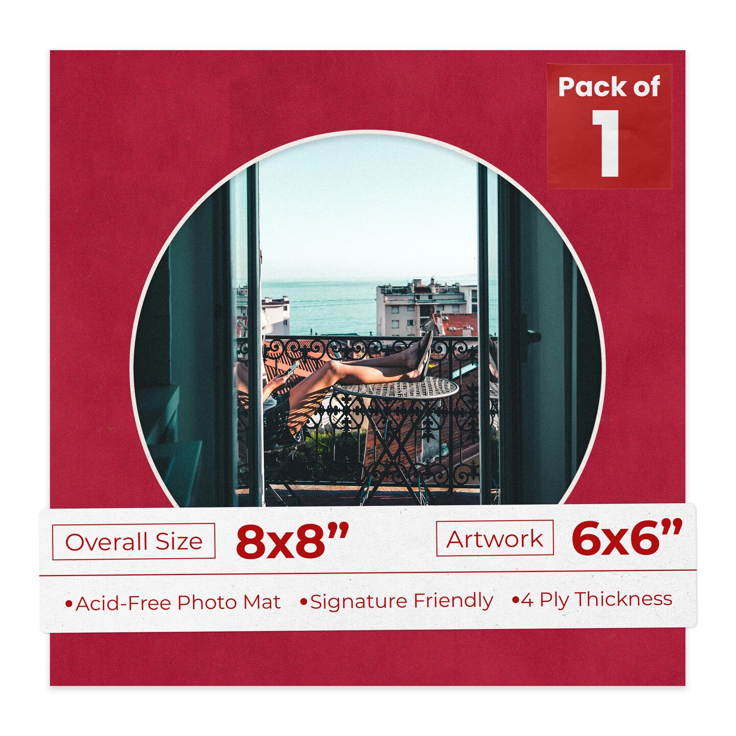 Red Suede Mat Board for 8x8 Frames - Circle Opening for 6x6 Photos